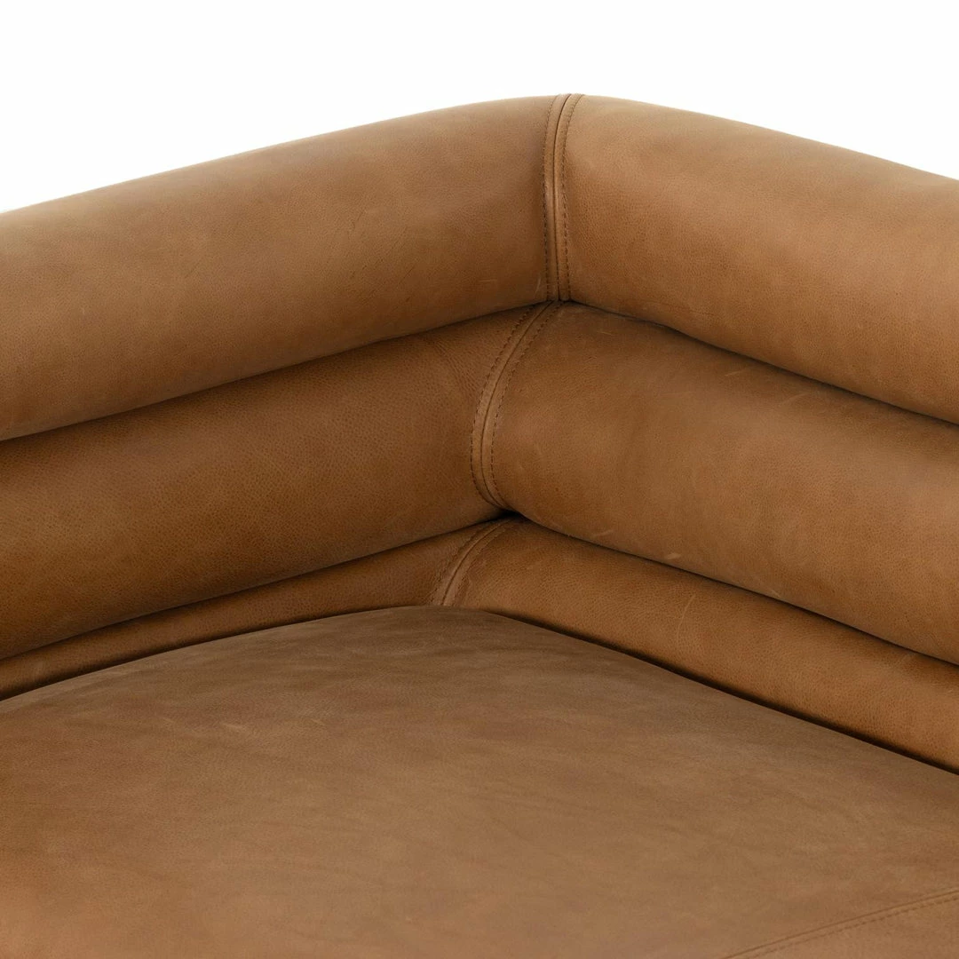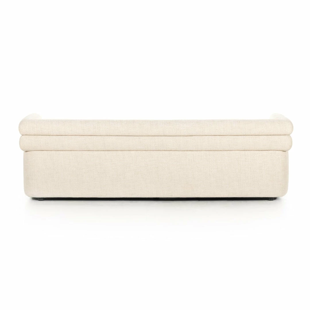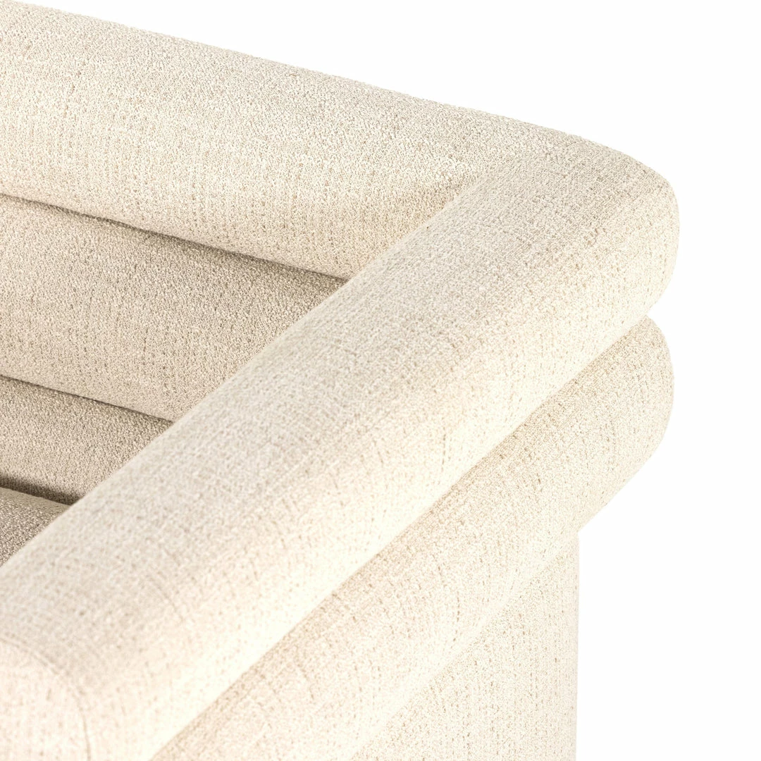 Horizontal channeling lends a clean, linear look to sofa-style seating, while cream-colored high-performance fabric adds fresh sensibility perfectly suited for the modern living room.