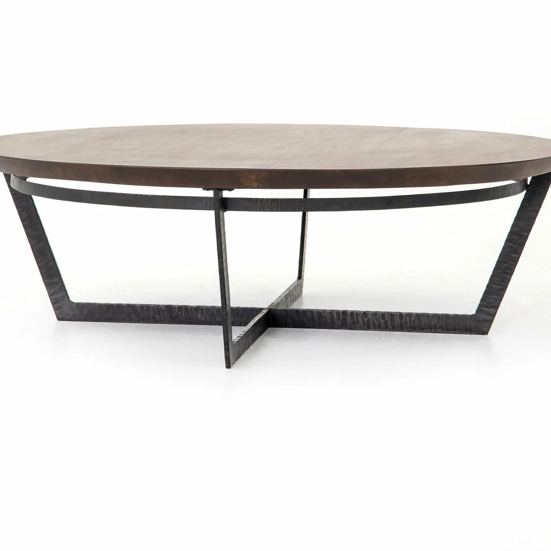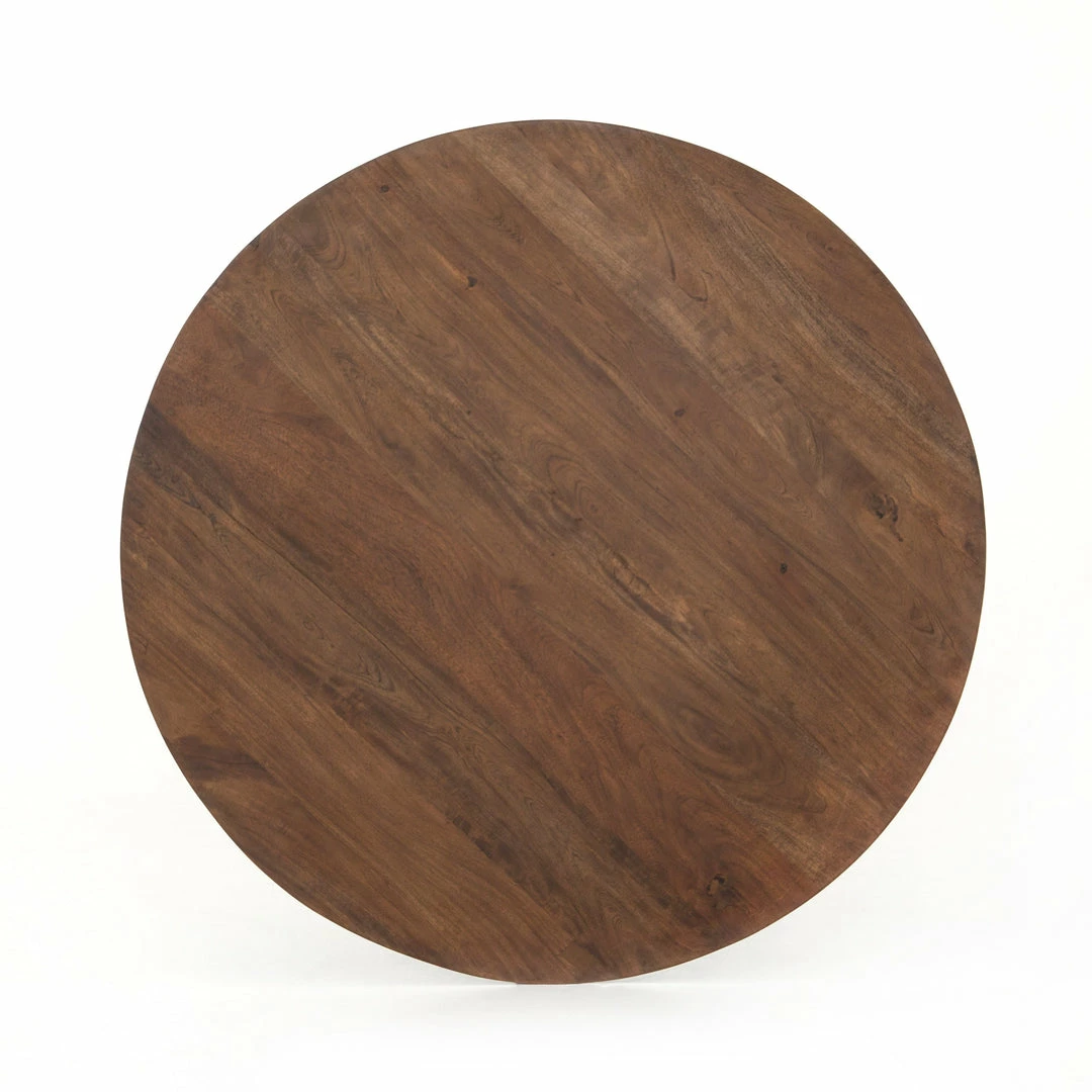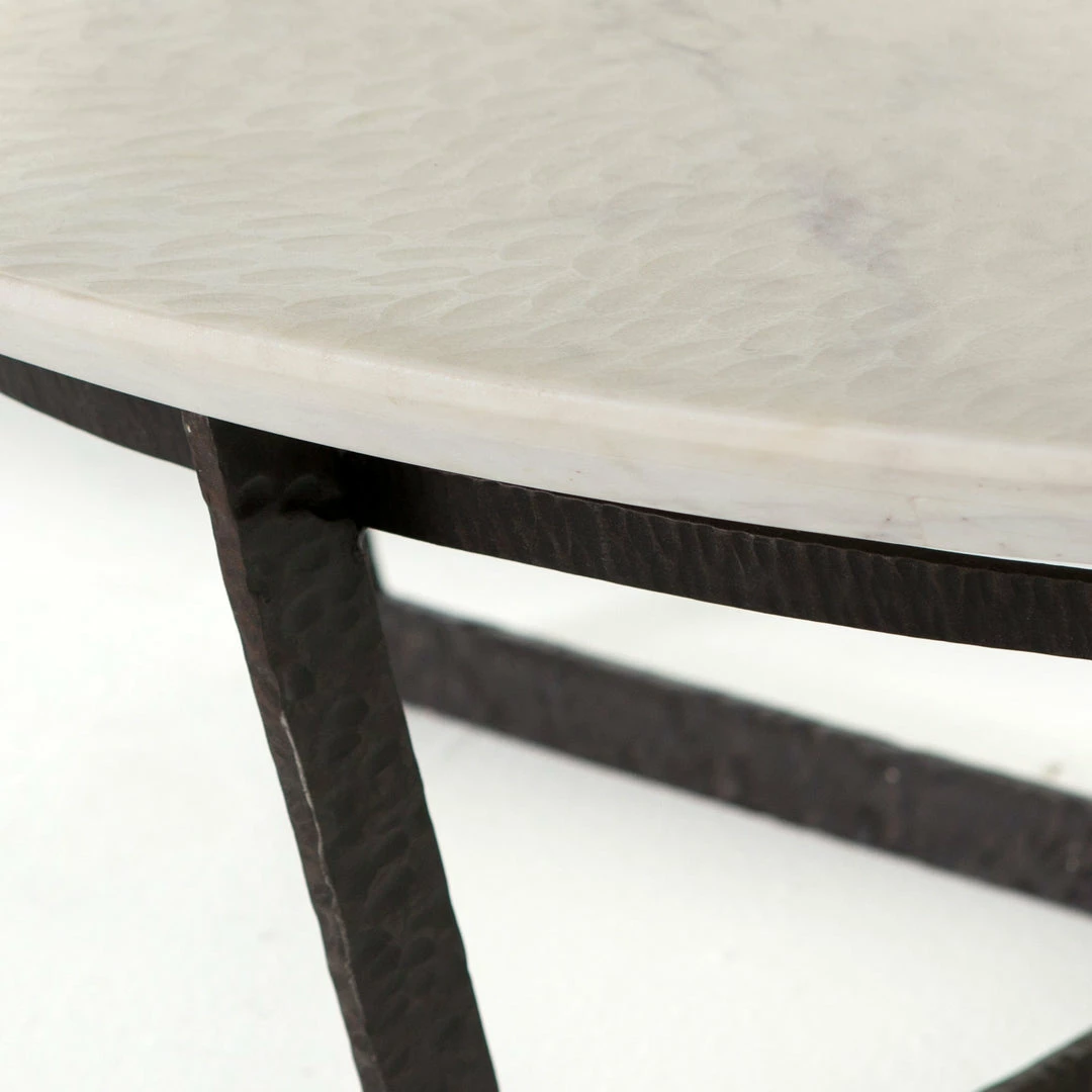 Elegant edge. A raw, rustic iron base supports a round, white marble top, which is sandblasted for textured nuance and sophisticated polish.