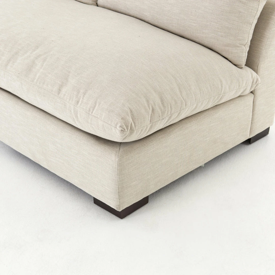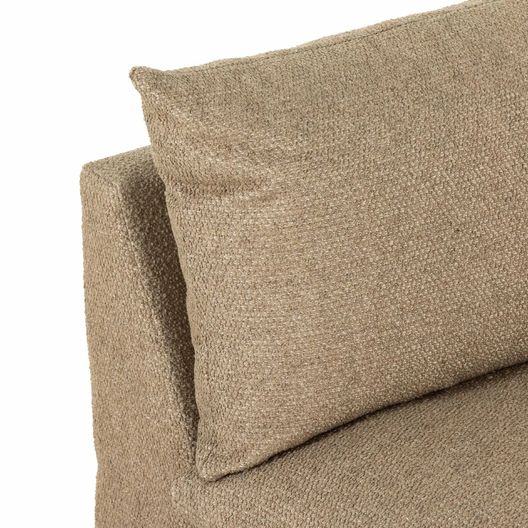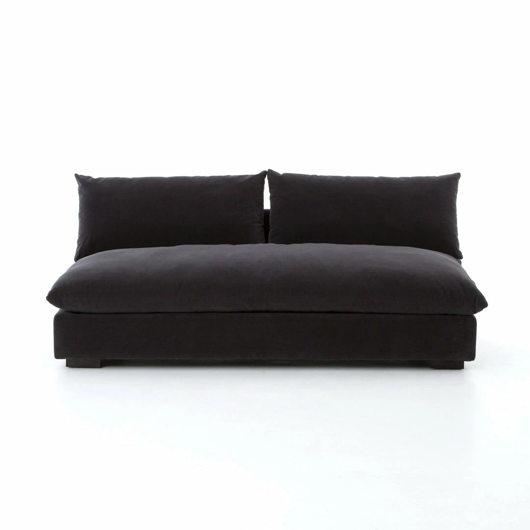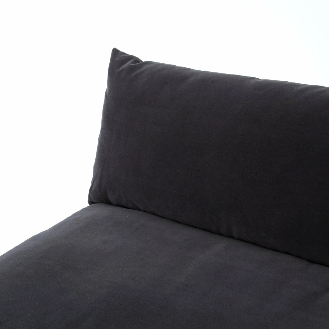 Welcome to the modern lounging essential. Twill’s purposeful slub adds textural interest to soft, stain-resistant fabric in an inviting deep charcoal. Armless piece to matching sectional.