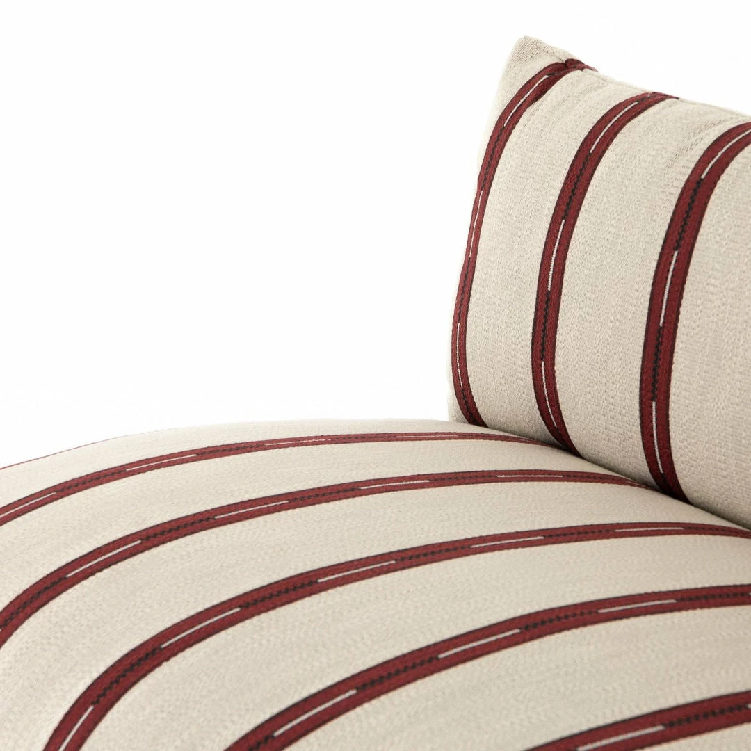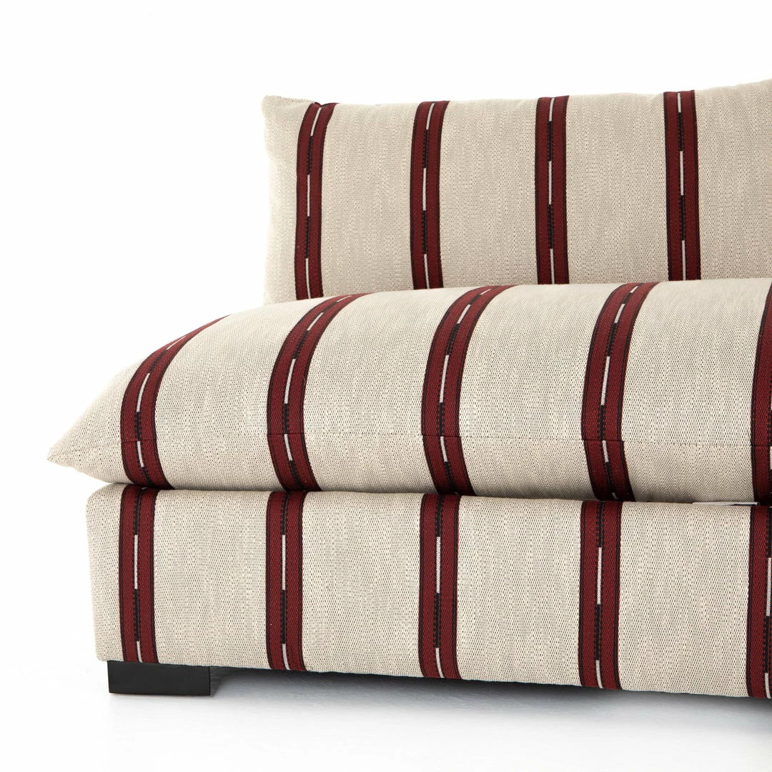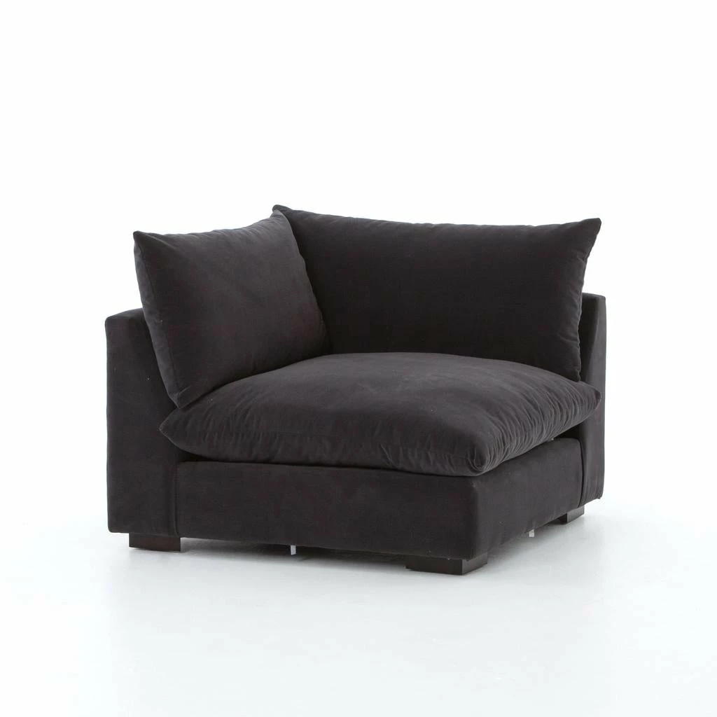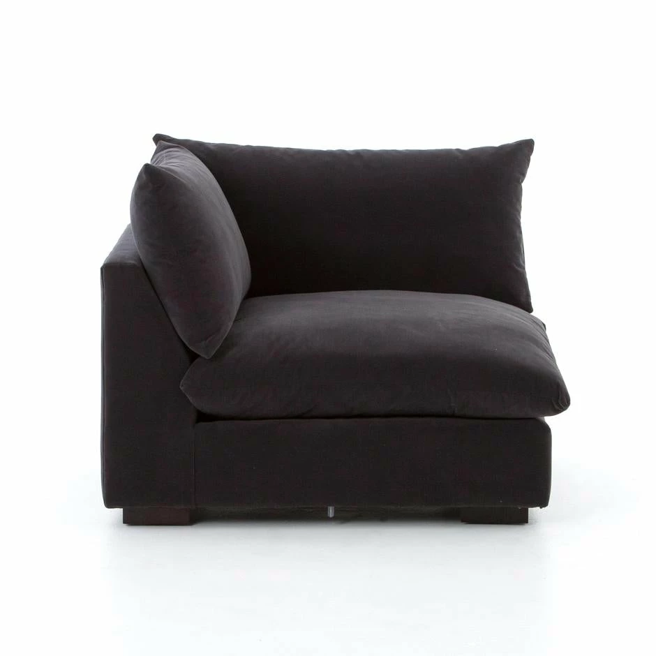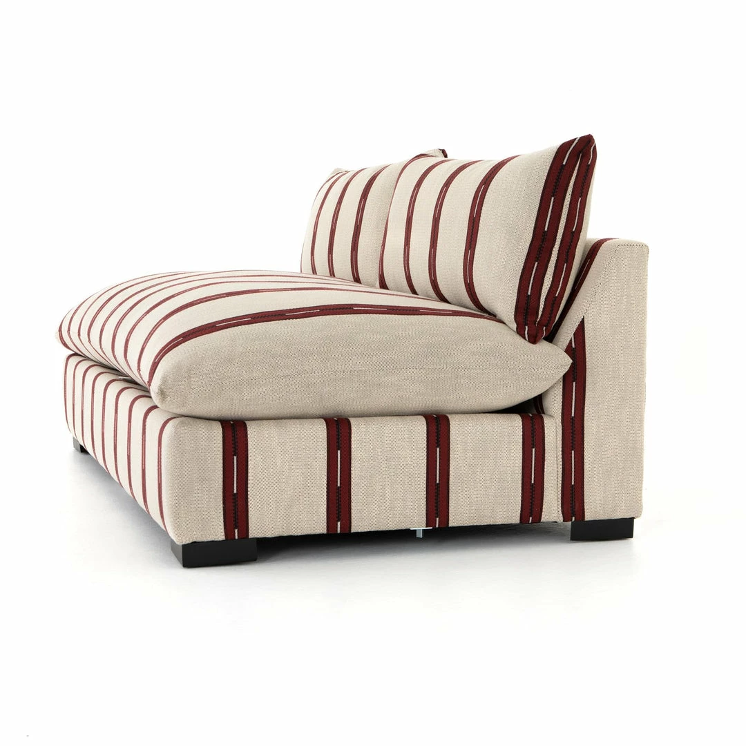 Welcome to the modern lounging essential. Twill’s purposeful slub adds textural interest to soft, stain-resistant fabric in an inviting deep charcoal. Armless piece to matching sectional.