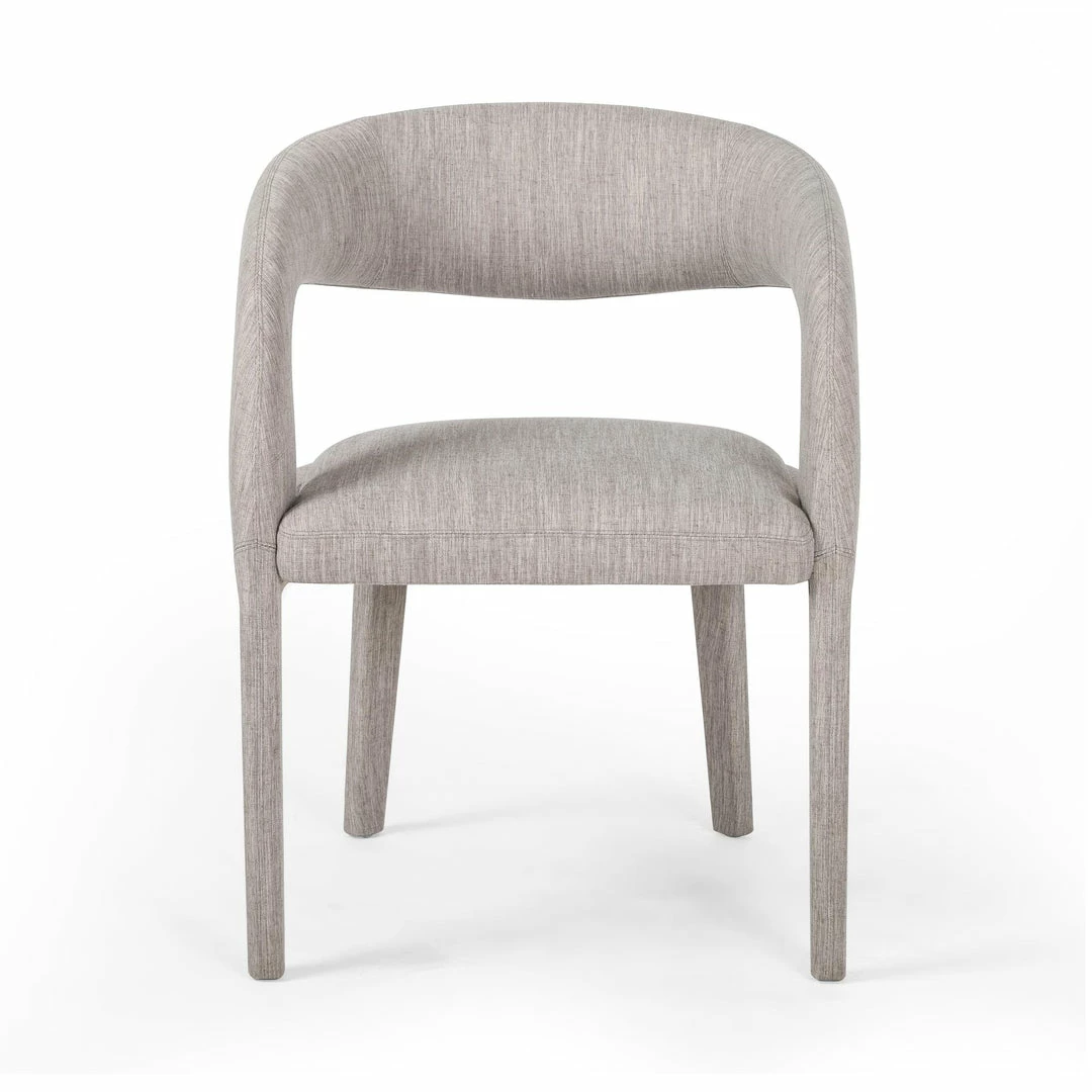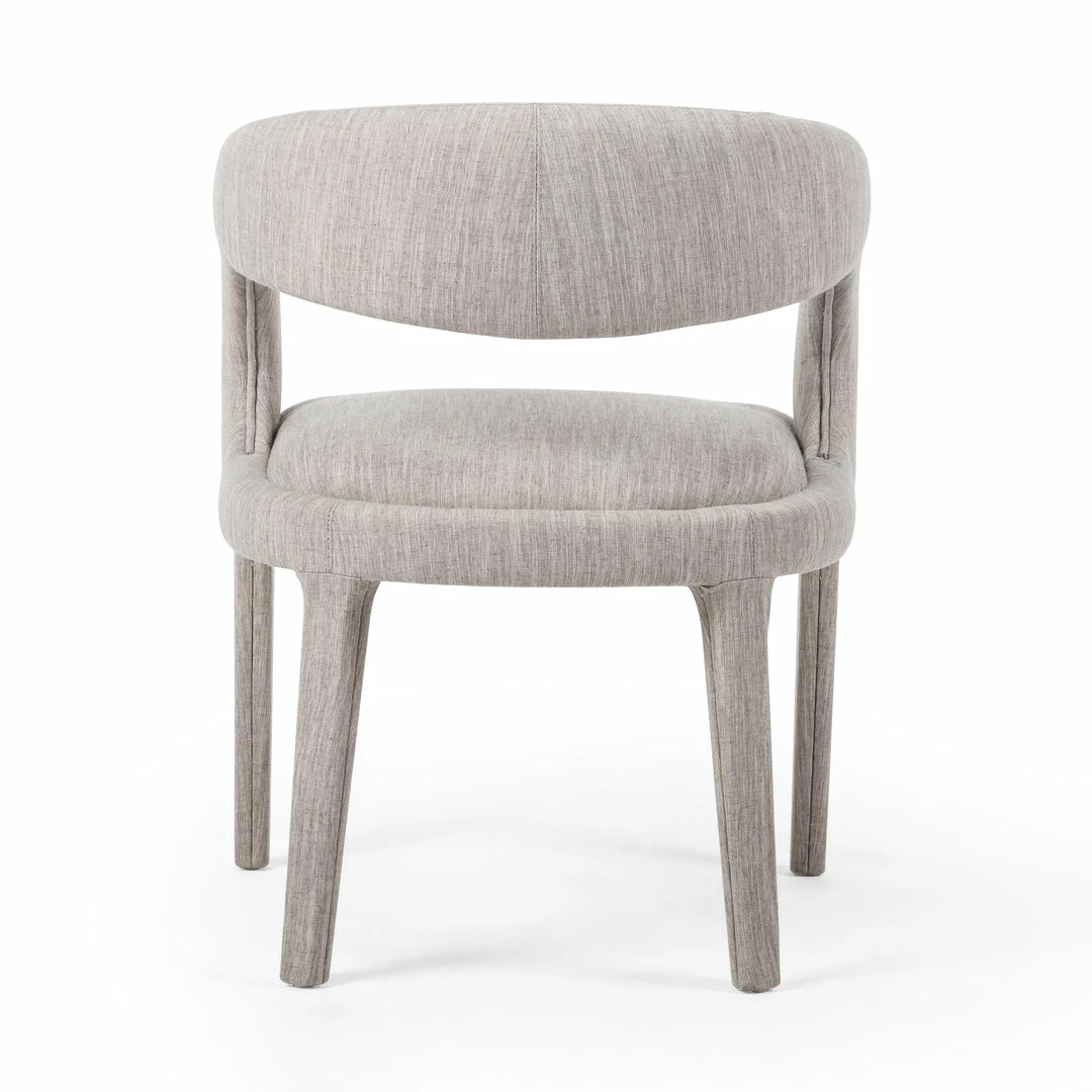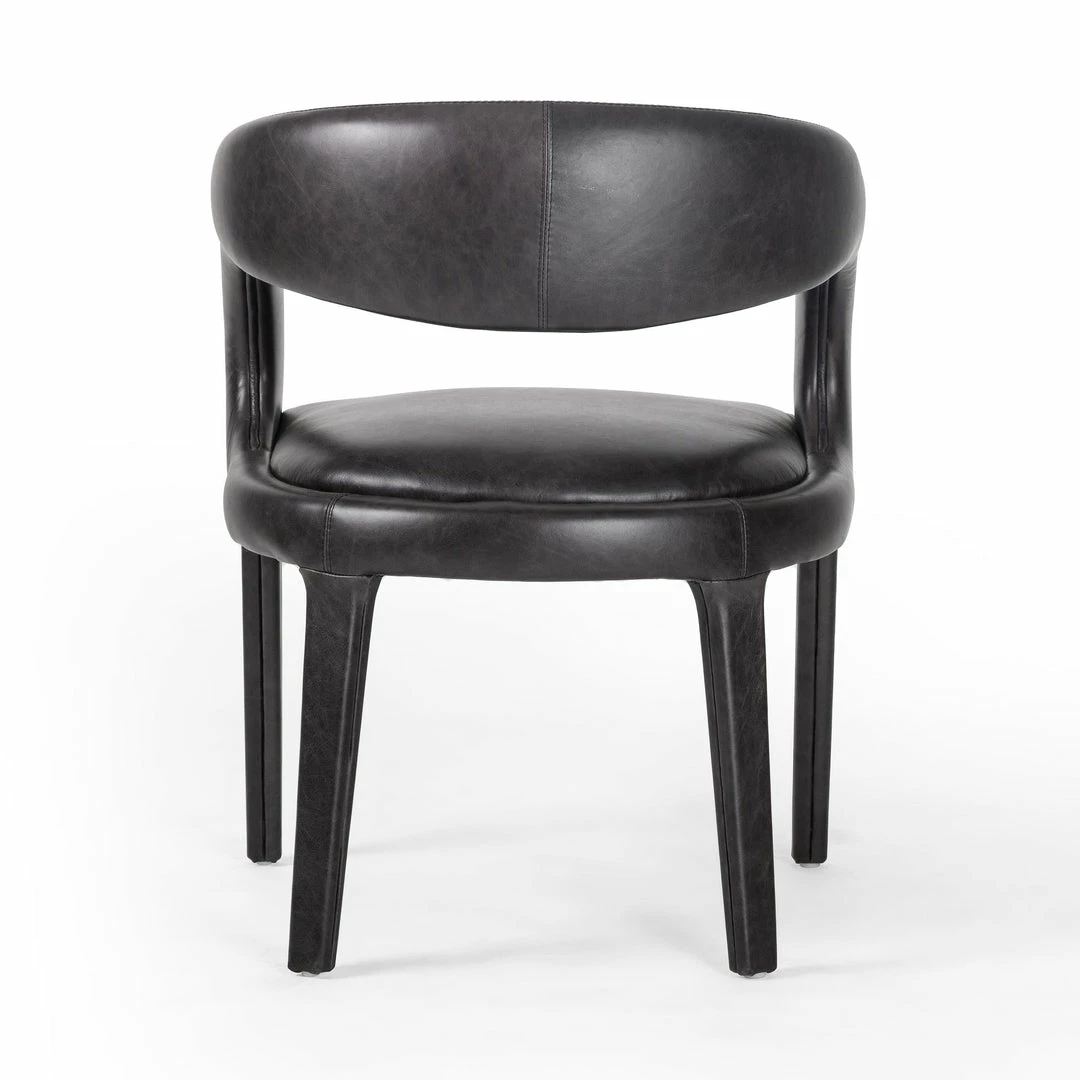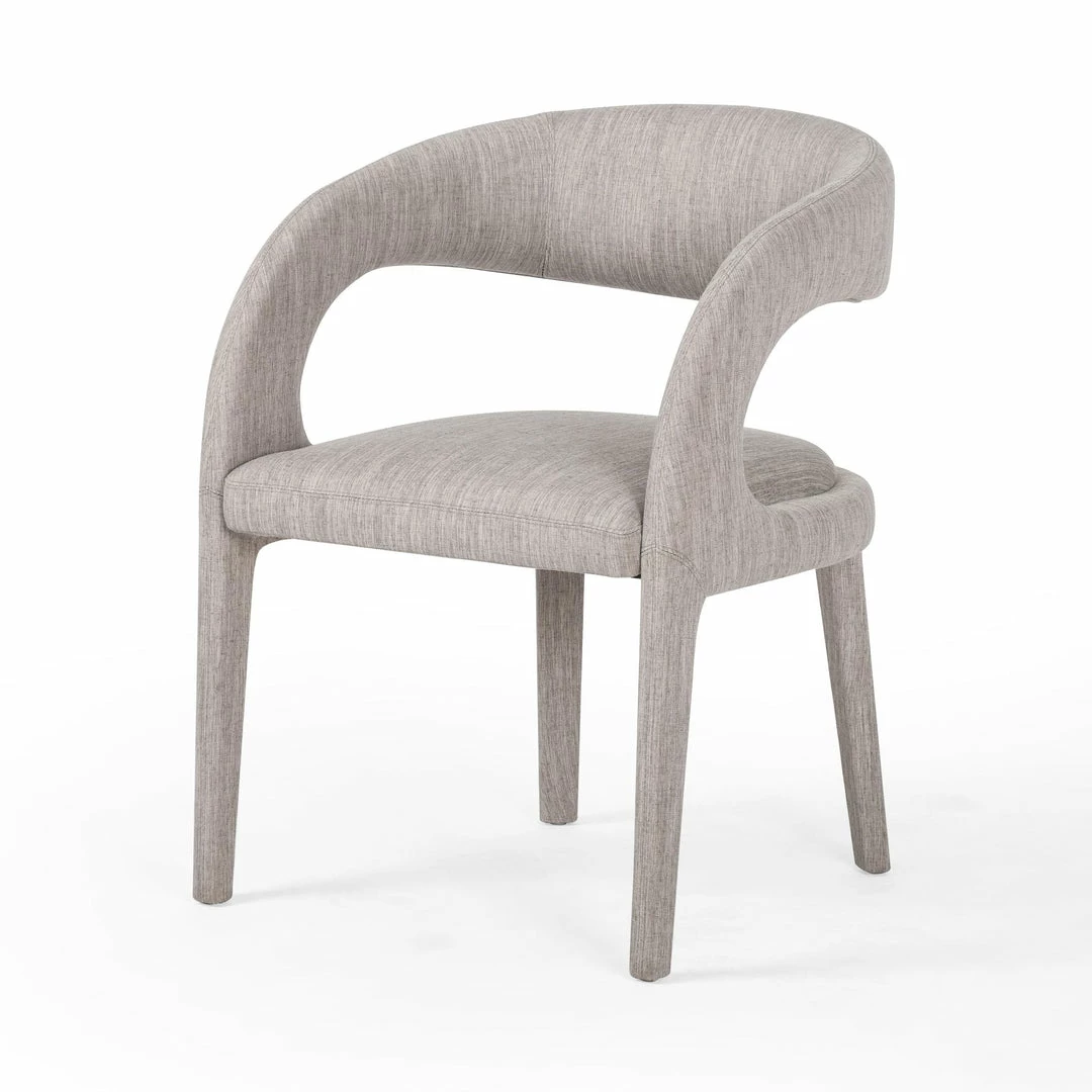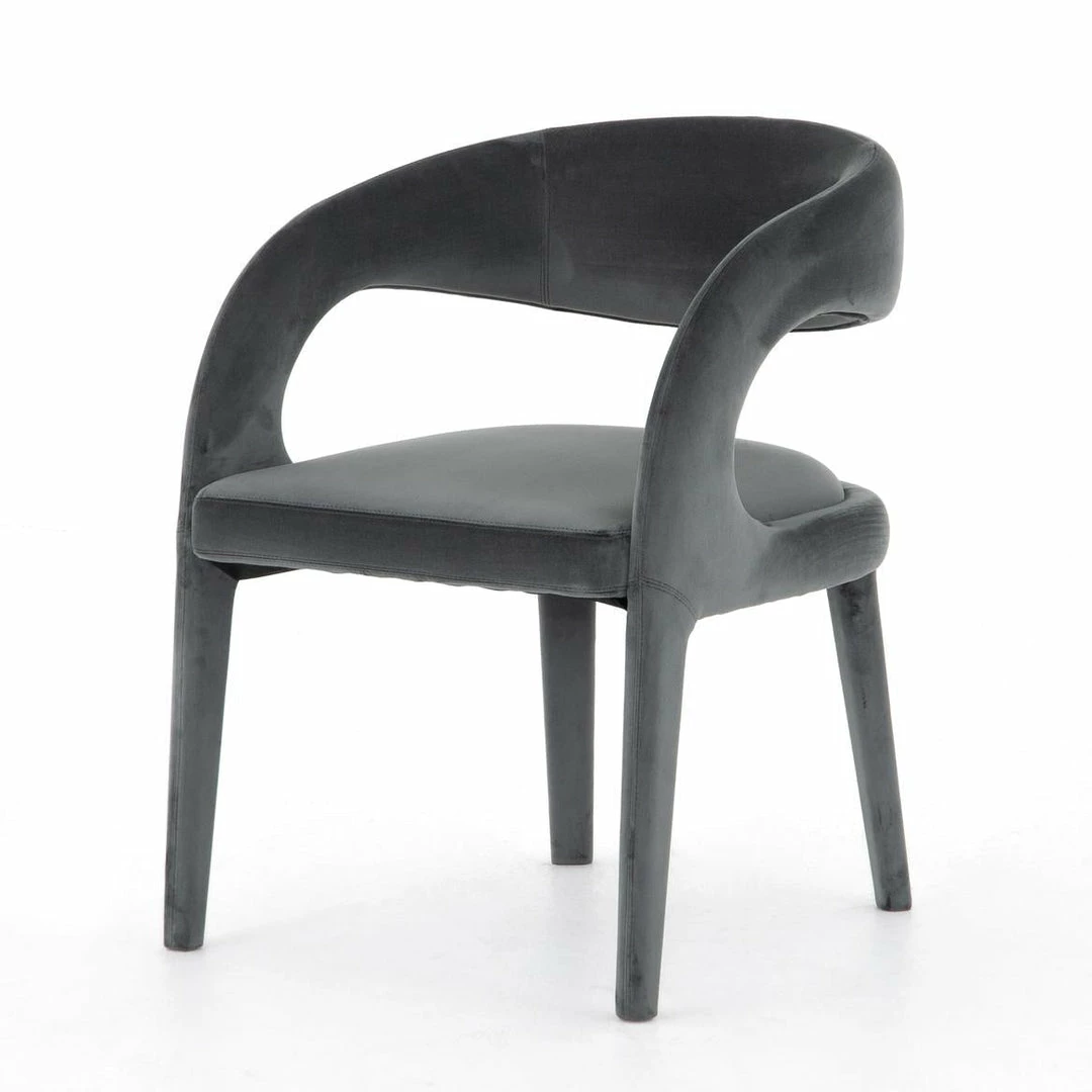 Strike a pose. Well curved and finely sculpted, velvety charcoal-upholstered seating makes for a unique and shapely addition to the modern dining room.