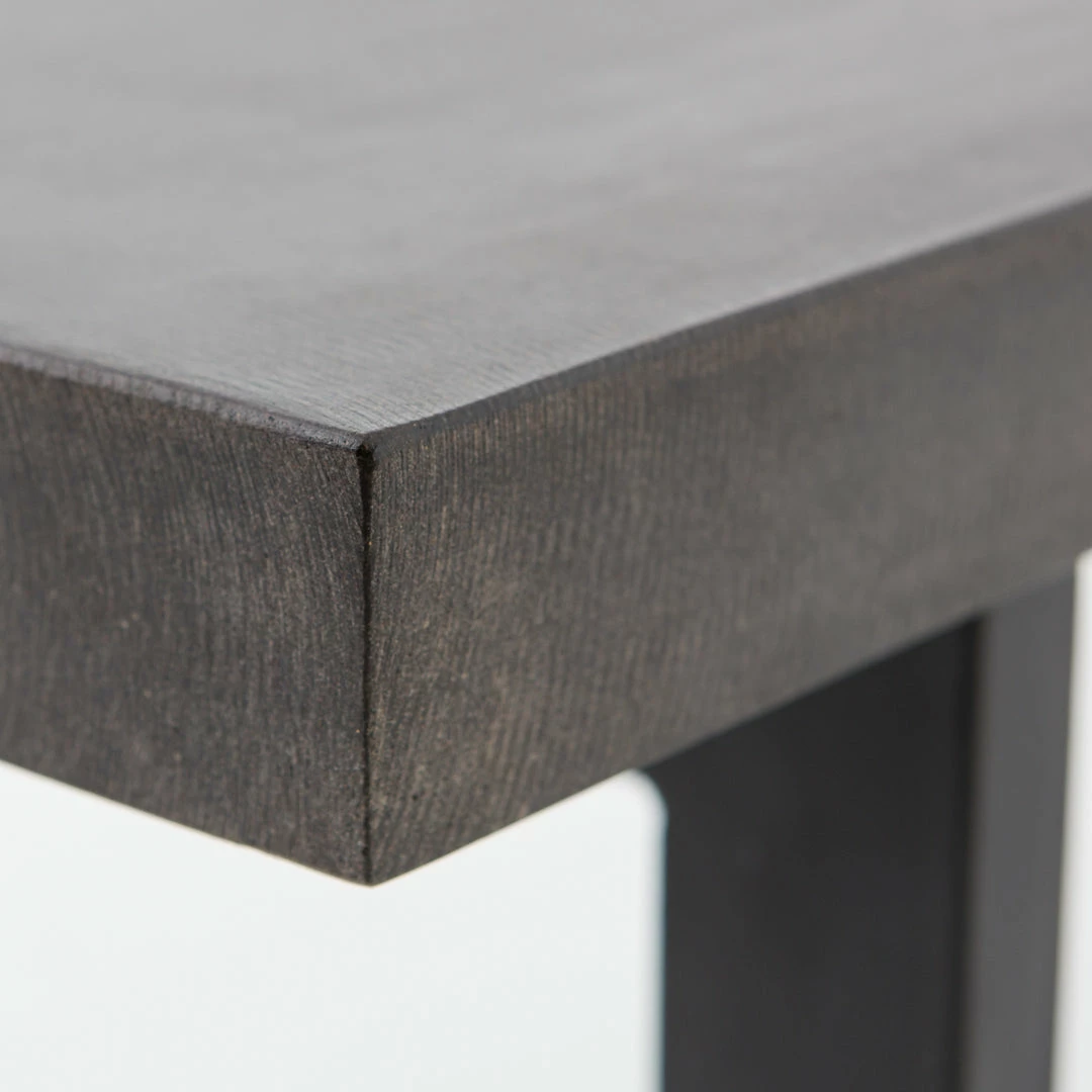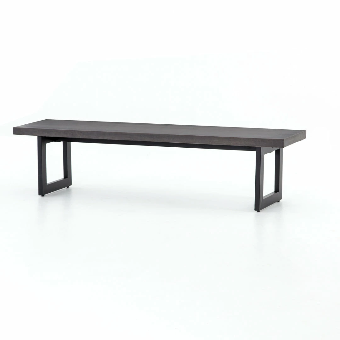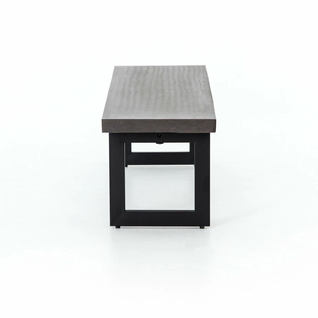 A spacious, black-finished iron base supports rectangular seating of black lava stone, for a long, clean look with industrial appeal. Cover or store indoors during inclement weather and when not in use.