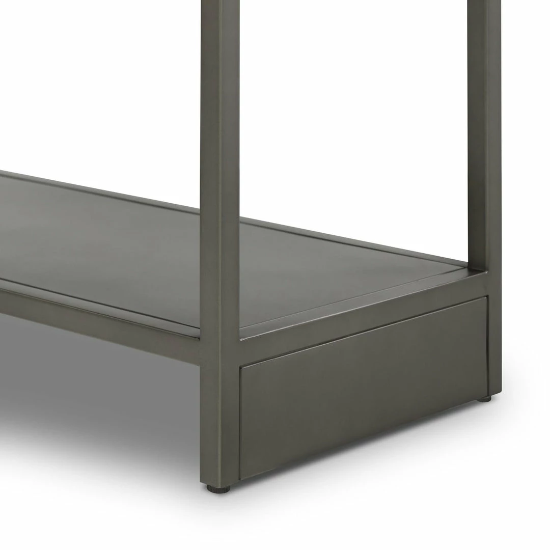 Sleek, simple and beautifully on-trend. Gunmetal-finished iron forms an airy open frame, with an arched top for modernity.
