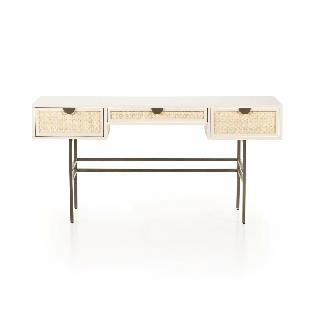 Bring a light look to the modern office. A lacquered three-drawer desk features woven cane panels and half-moon hardware finished in an aged brass.
