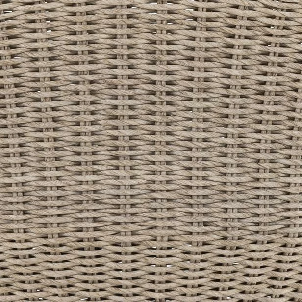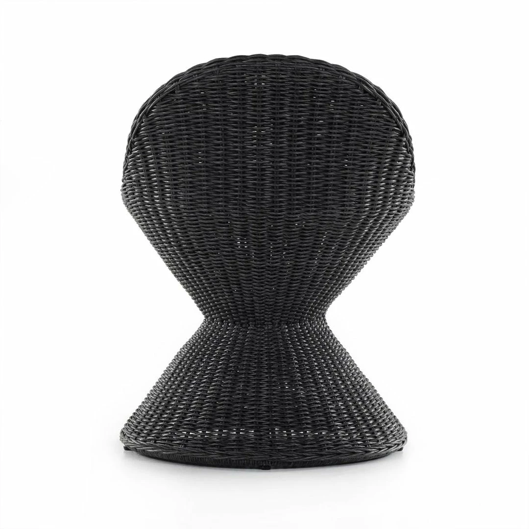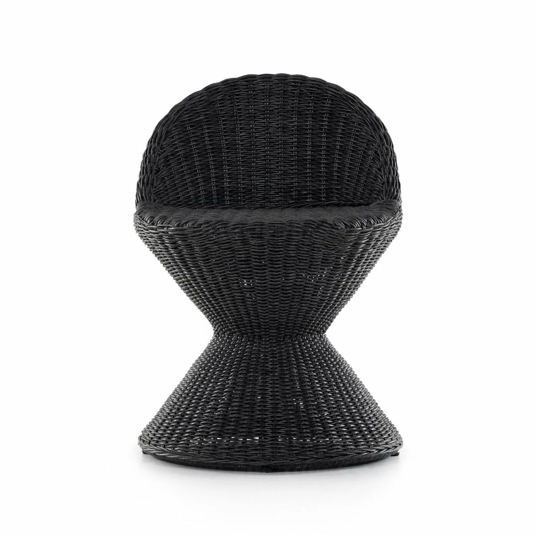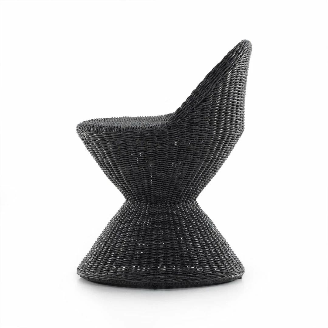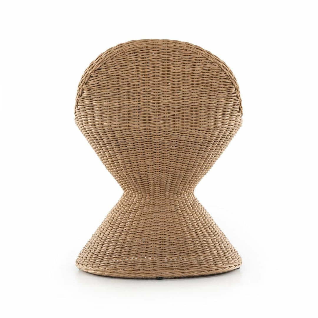 Inspired by a 1970s Russell Woodward design, this striking outdoor dining chair features a tight all-weather wicker weave in an hourglass shape. A low back brings a modern update to this classic design. Cover or store inside during inclement weather and when not in use.