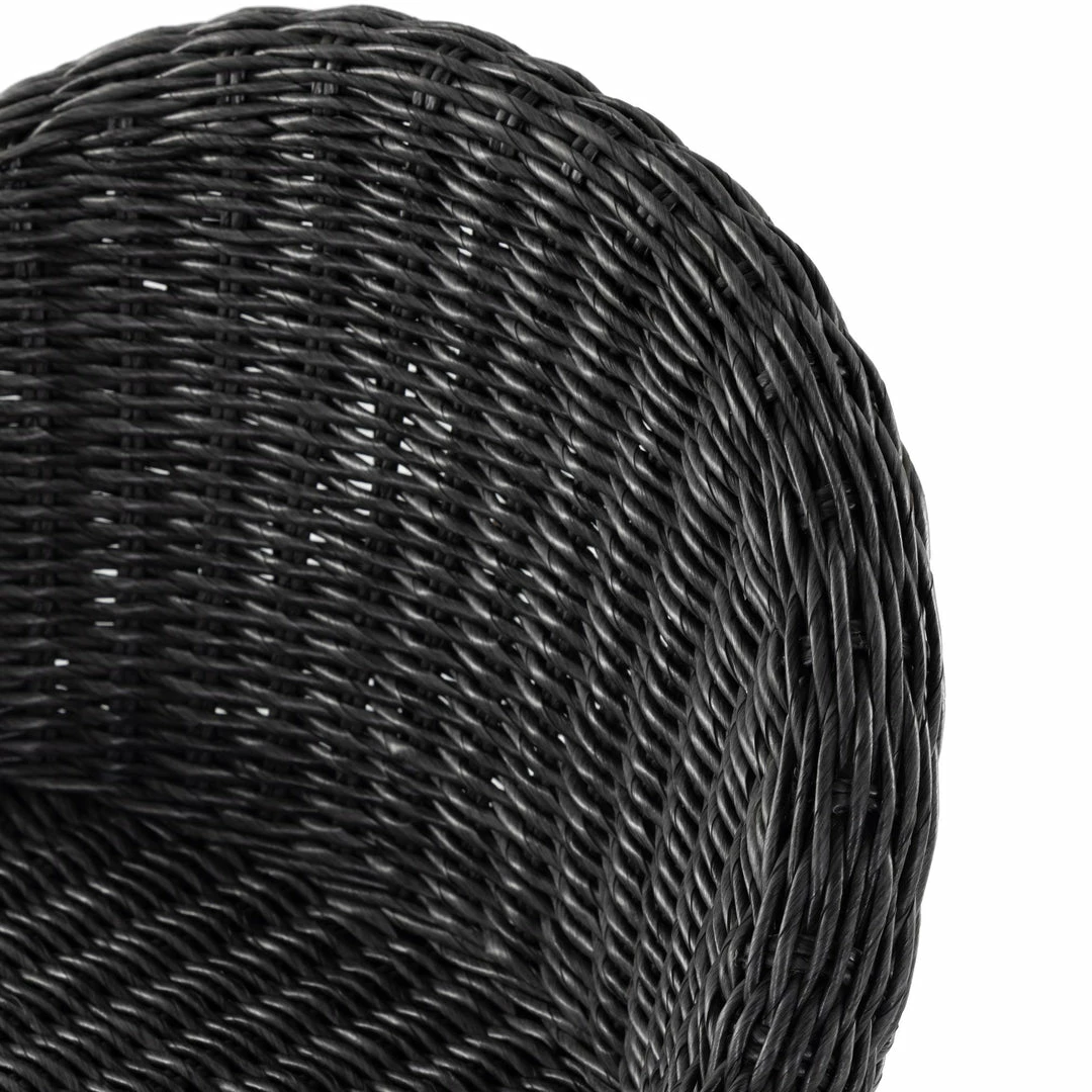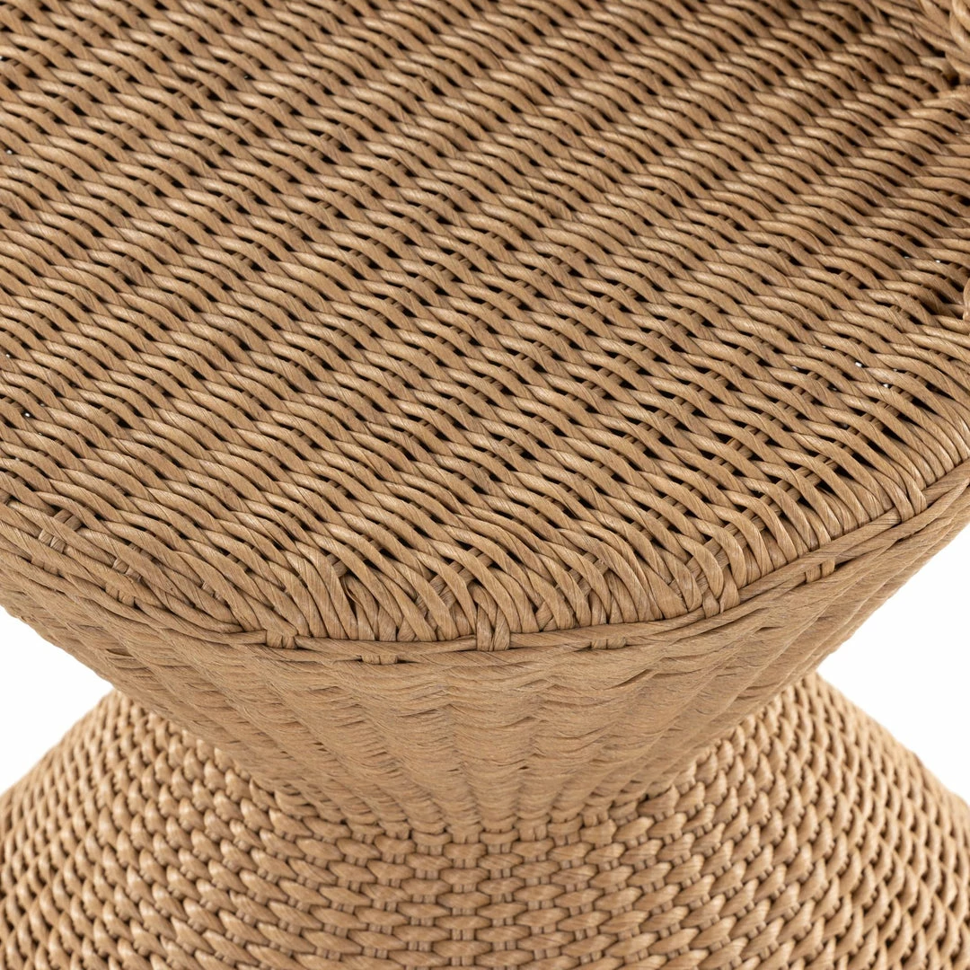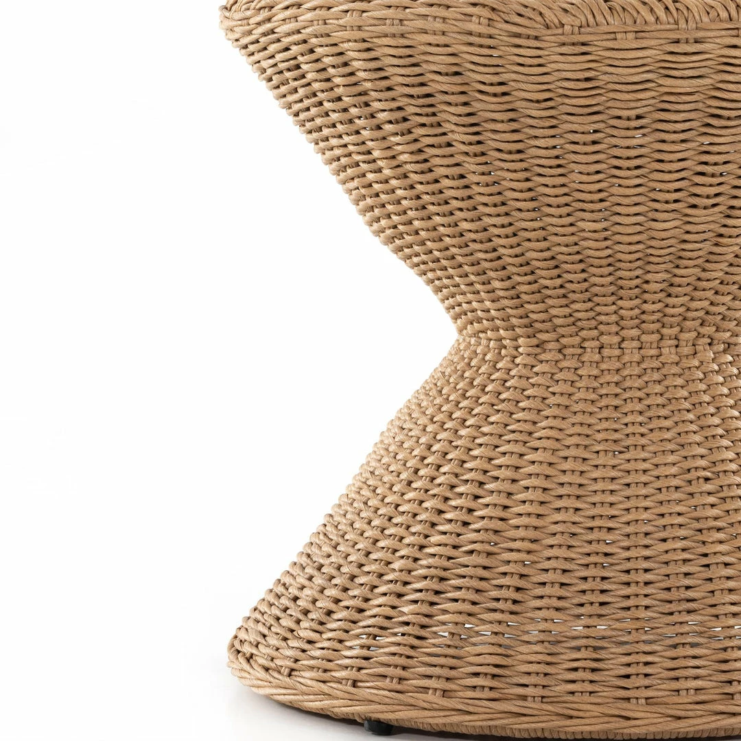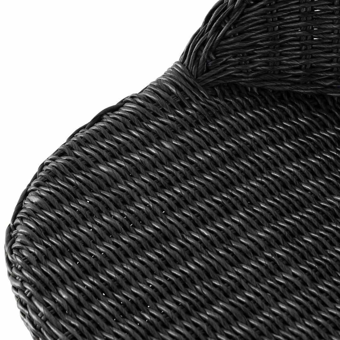 Inspired by a 1970s Russell Woodward design, this striking outdoor dining chair features a tight all-weather wicker weave in an hourglass shape. A low back brings a modern update to this classic design. Cover or store inside during inclement weather and when not in use.