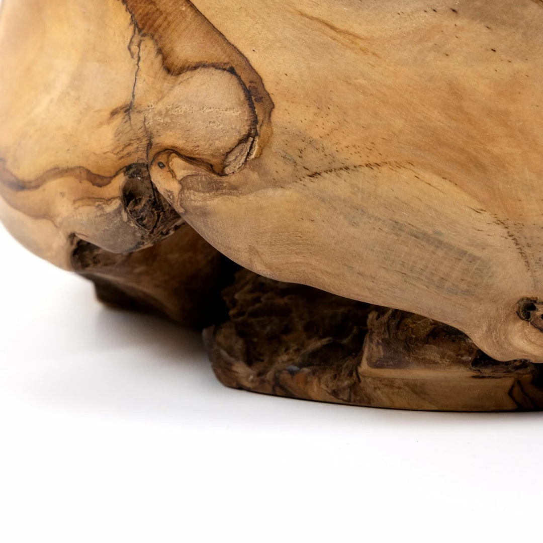 Craft an organic look, indoors or out. Shaped from solid teak with visible knots and holes, a decorative bowl is ready to keep items on-hand in style. Each bowl will vary in shape, size and color, based on materialโs aging process. Store inside during inclement weather and when not in use.