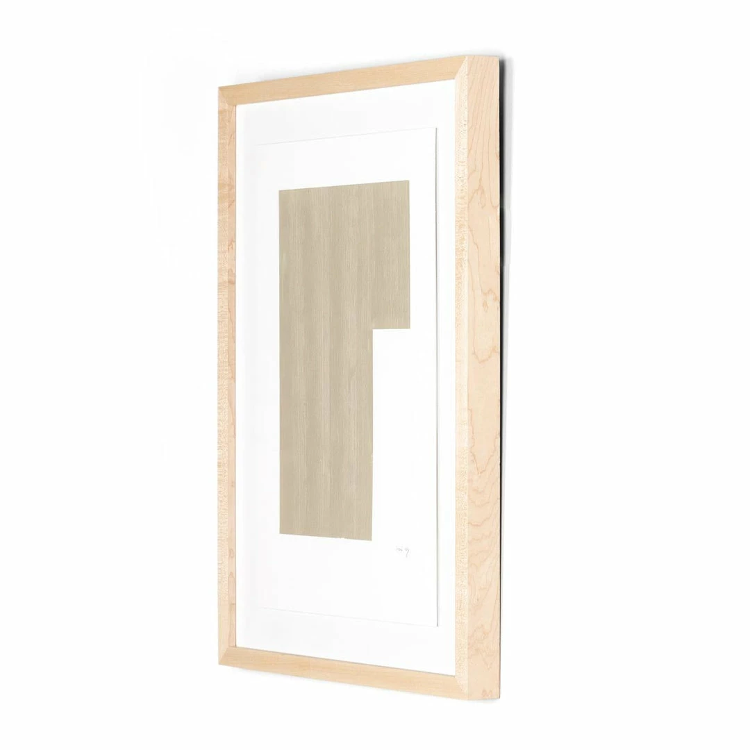 Los Angeles artist and interior designer Victoria Holly looks to classic colors and simple shapes for her minimalist, plaster-based paintings. Using a progressive printing technique which layers ink to create tangible texture, this piece is texture printed on matte canvas with a spot gloss treatment for added dimension. Framed within natural American maple for a museum-quality look. Handmade in Austin, Texas.