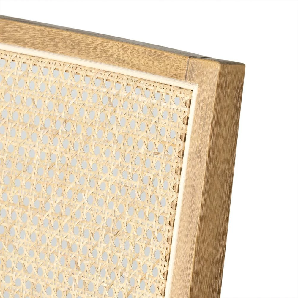 Mixed materials make the chair. Solid natural beech wood features a natural cane back for extra texture, while a butterscotch-finished faux leather seat serves total comfort.
