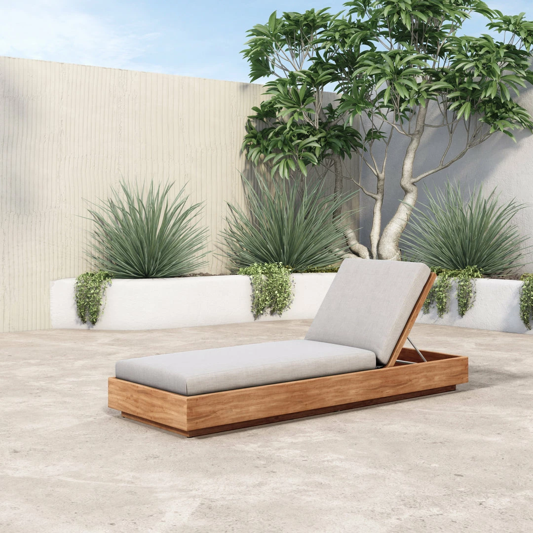 A slim, stylish profile prime for lounging. Boxed base of FSC-certified teak frames durable, outdoor-friendly cushioning in an inviting charcoal. Adjustable back for comfort and ease. Cover or store indoors during inclement weather and when not in use.