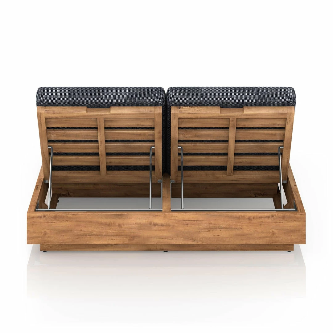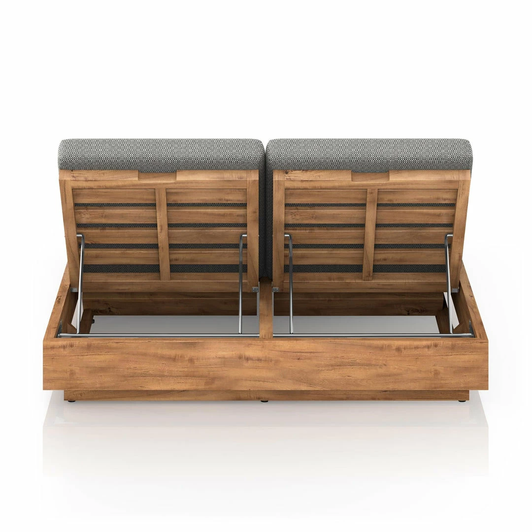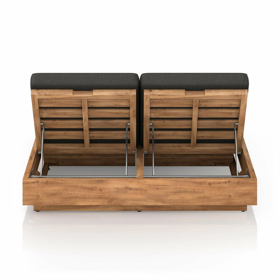 A slim, stylish profile prime for double lounging. Boxed base of FSC-certified teak frames durable, outdoor-friendly cushioning in an inviting charcoal. Adjustable backs and back pillows offer individual comfort and ease. Cover or store indoors during inclement weather and when not in use.