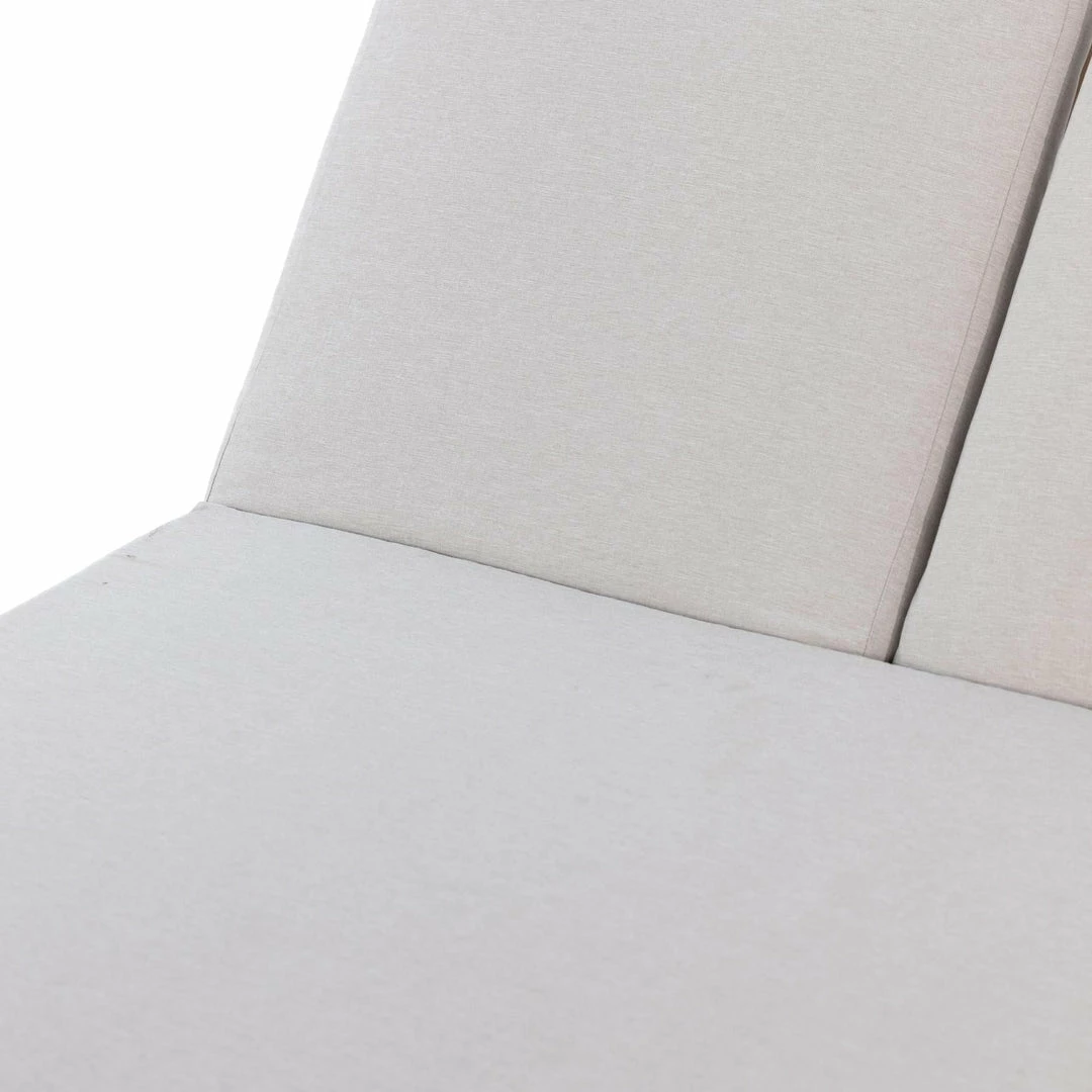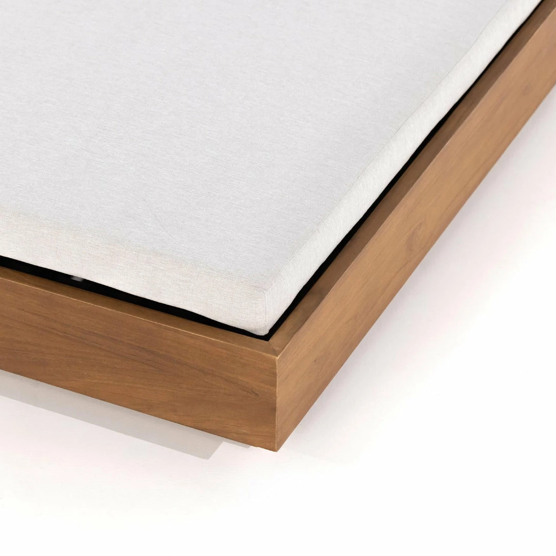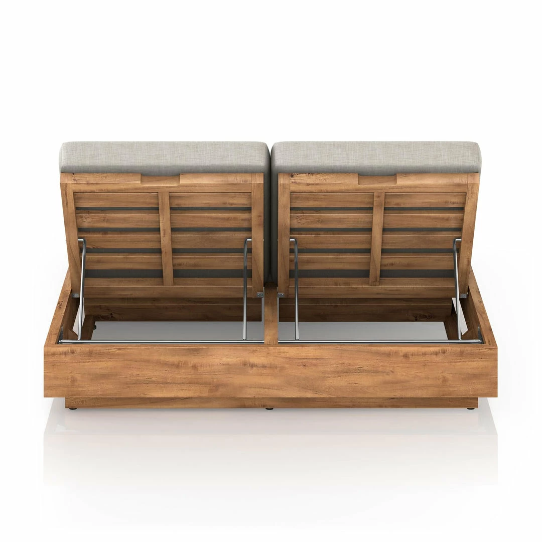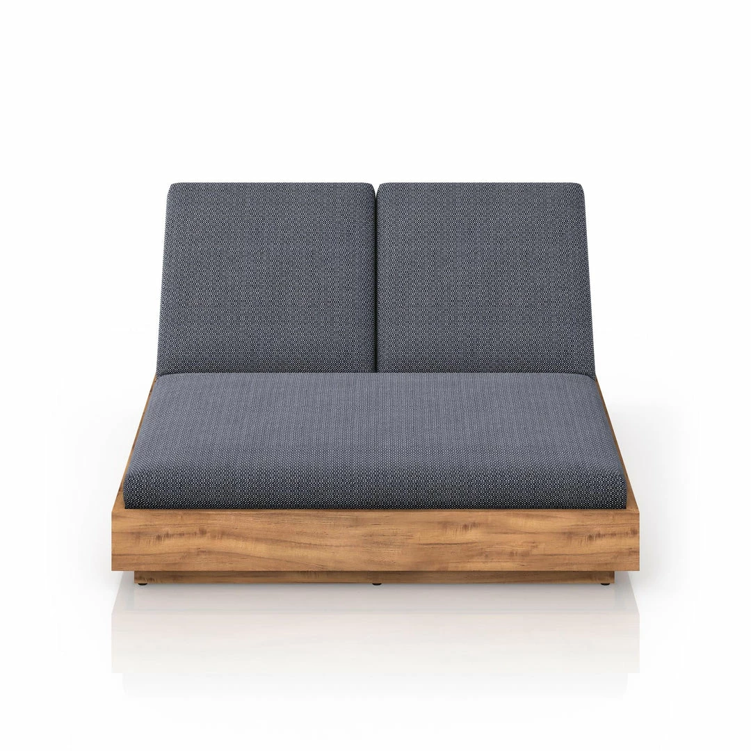 A slim, stylish profile prime for double lounging. Boxed base of FSC-certified teak frames durable, outdoor-friendly cushioning in an inviting charcoal. Adjustable backs and back pillows offer individual comfort and ease. Cover or store indoors during inclement weather and when not in use.