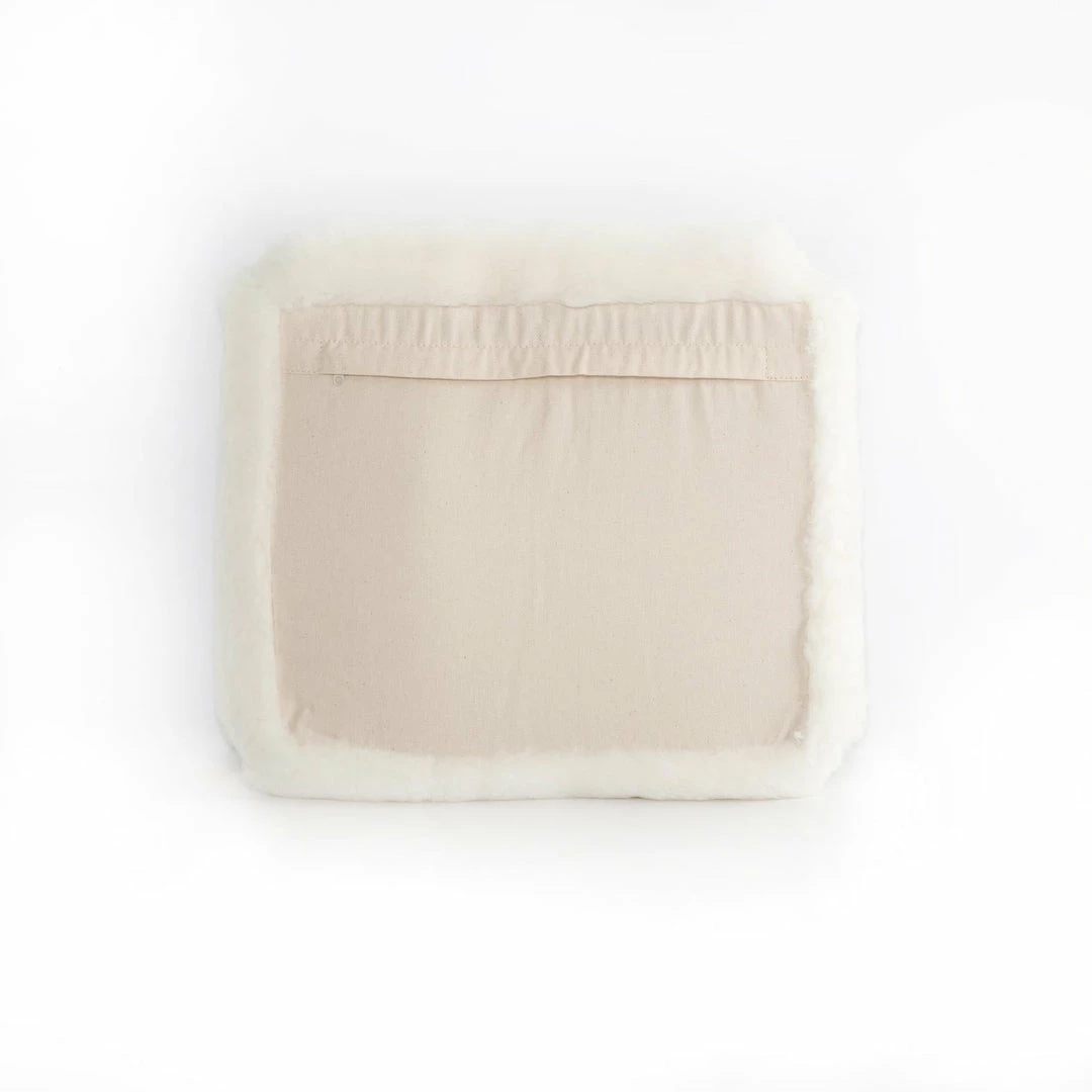 Have a seat. A squared cushion of cream-colored sheared sheepskin with ivory cotton backing brings an extra layer of comfort to a favorite dining style. Pair with Muestra Dining Chair or Bar/Counter Stool; for indoor use only. Ships with filler.
