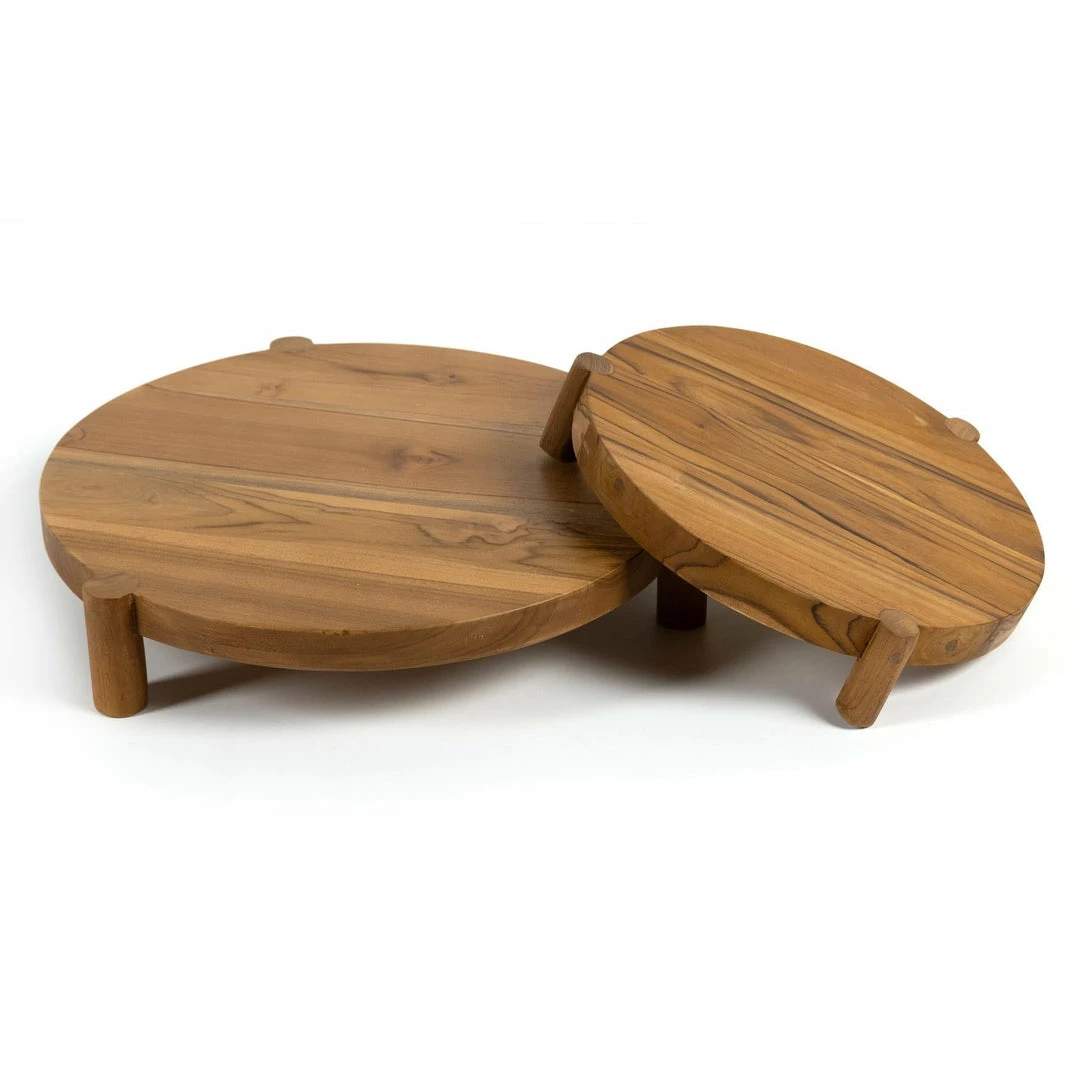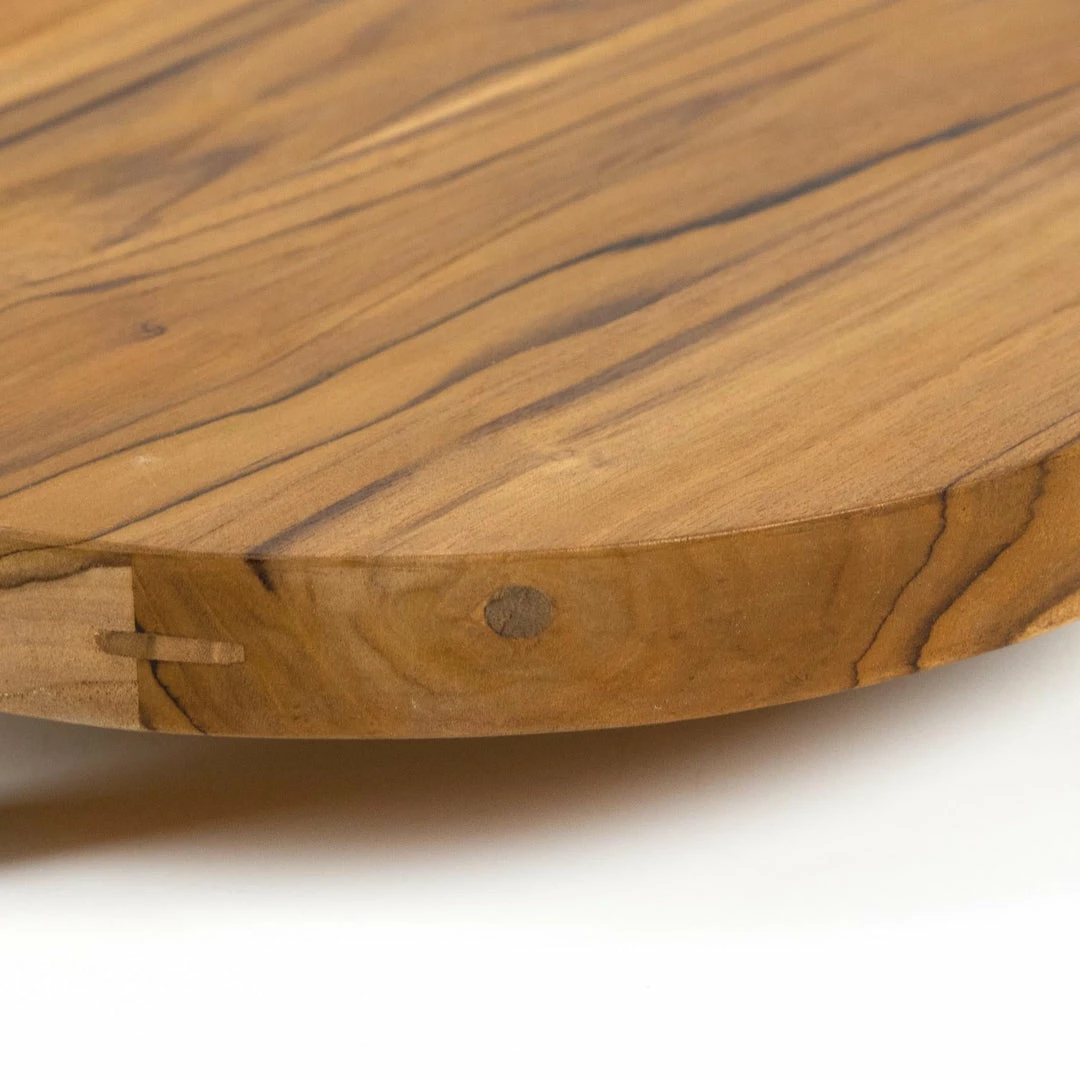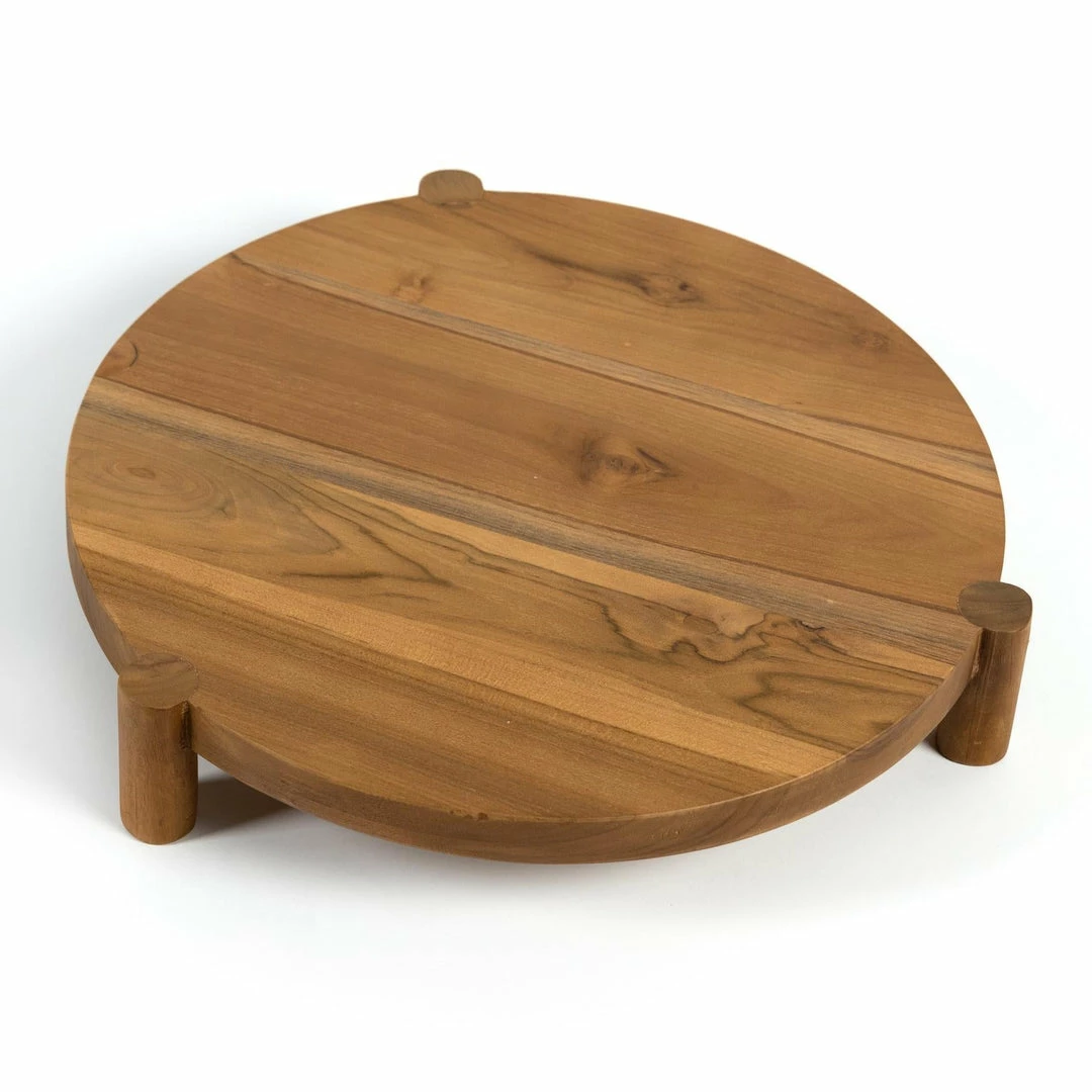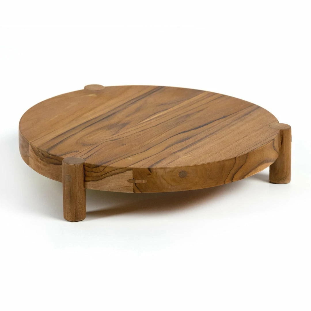 Style is served. A decorative tray made from solid teak, with visible knots and graining. Option to pair with matching tray in larger size, sold separately. Store inside during inclement weather and when not in use.