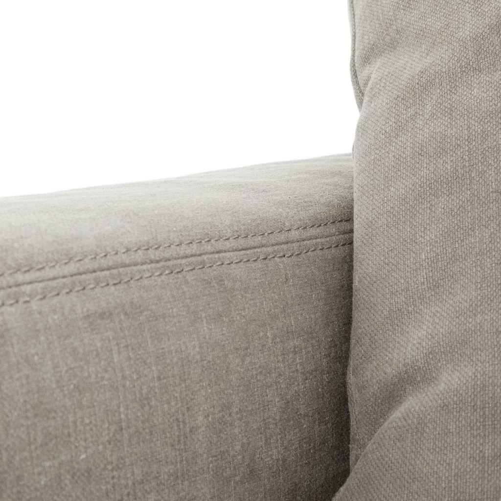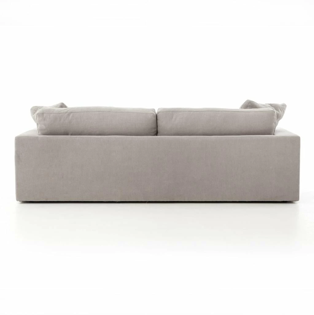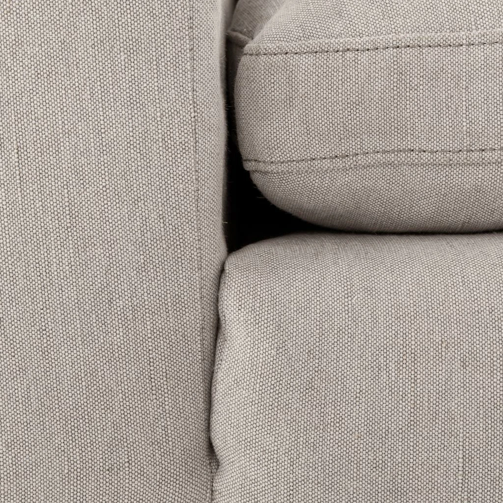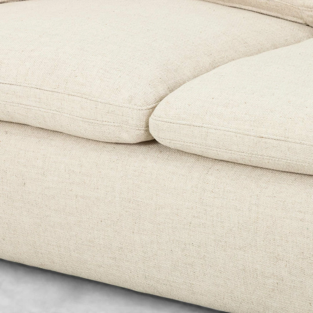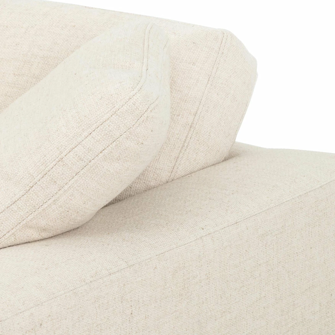 Sink-in luxury. Designed to mimic the casual comfort of a feather duvet, squared block arms frame feather-and down-filled seating for a relaxed look and feel. Fluff cushions regularly to maintain appearance; steam fabric for a more tailored look.