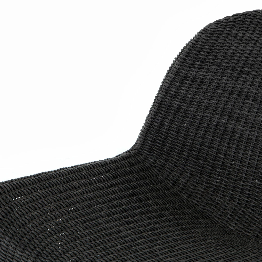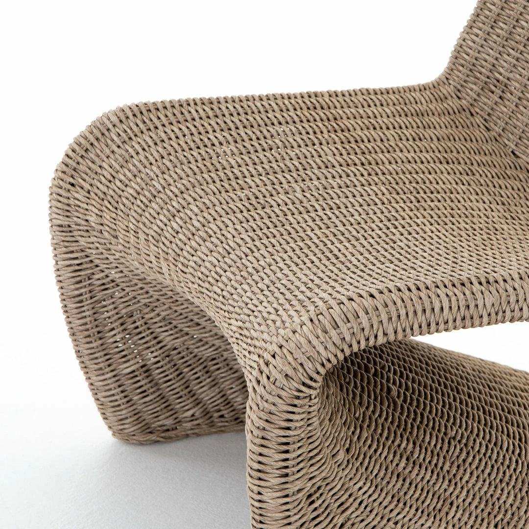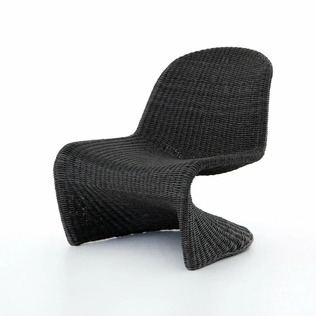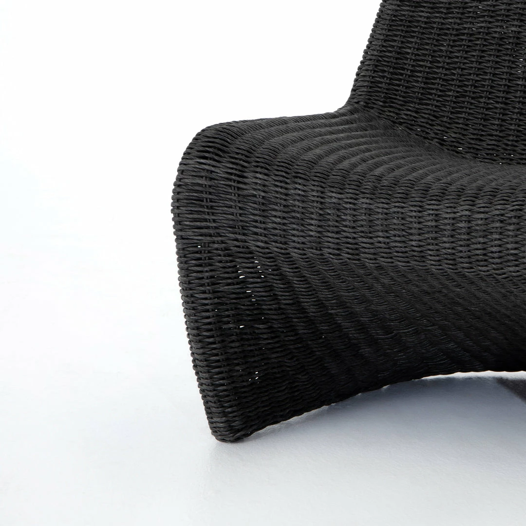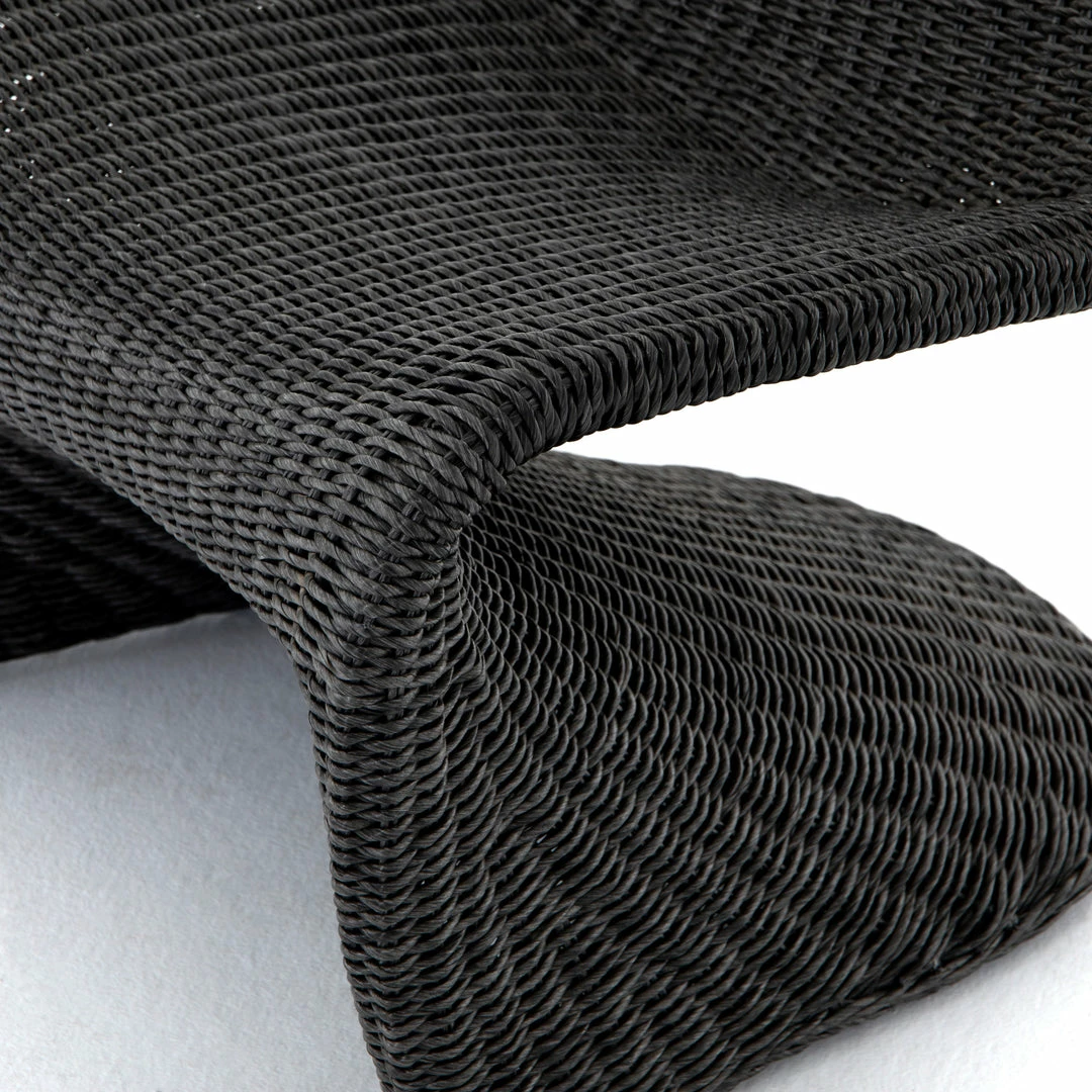 Strike a pose. All-weather wicker seating curves for shapely intrigue, indoors or out. Cover or store inside during inclement weather and when not in use.