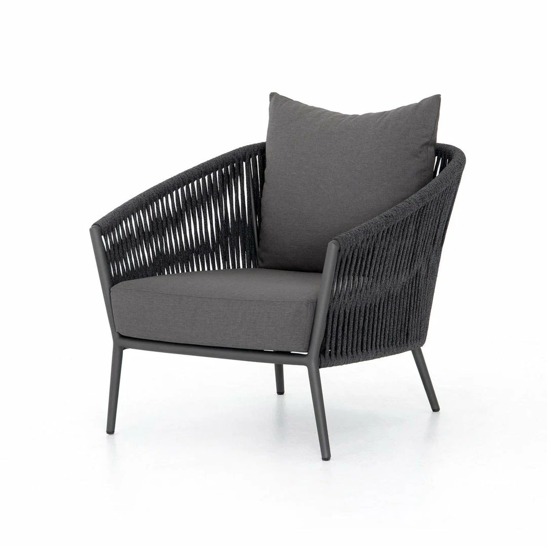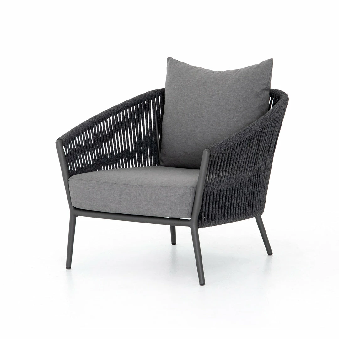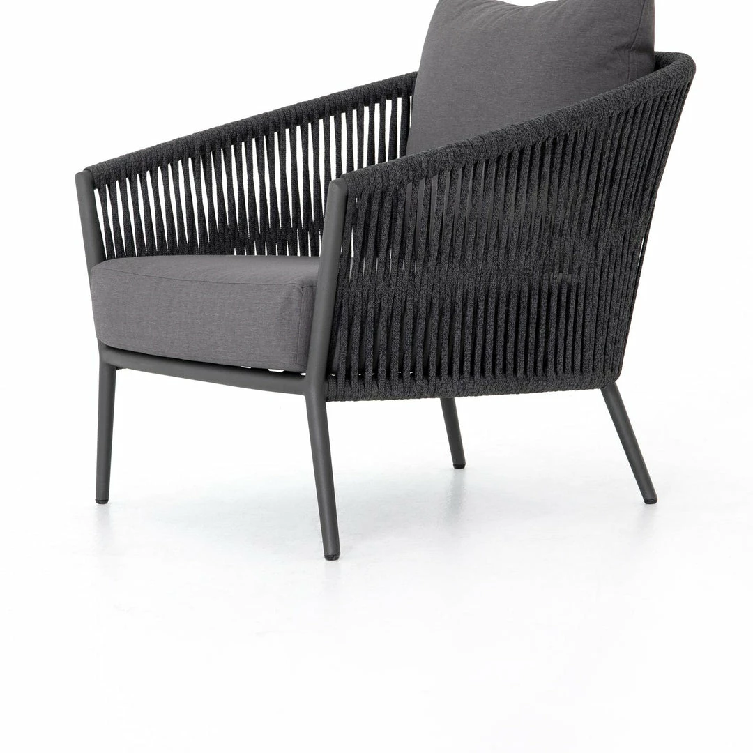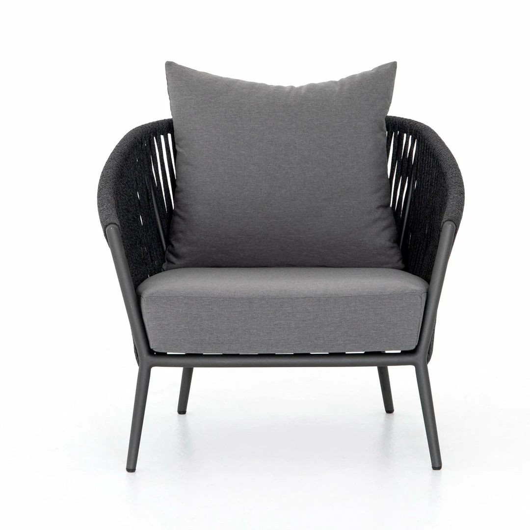 The perfect place for outdoor daydreaming. A beautiful rope-based design is woven across a durable aluminum frame in a rich bronze finish. Topped with a wide cushion and throw pillow, all upholstered in 100% Olefin, known for its UV-resistant, water-repellent and quick-drying abilities. Cover or store indoors during inclement weather and when not in use.