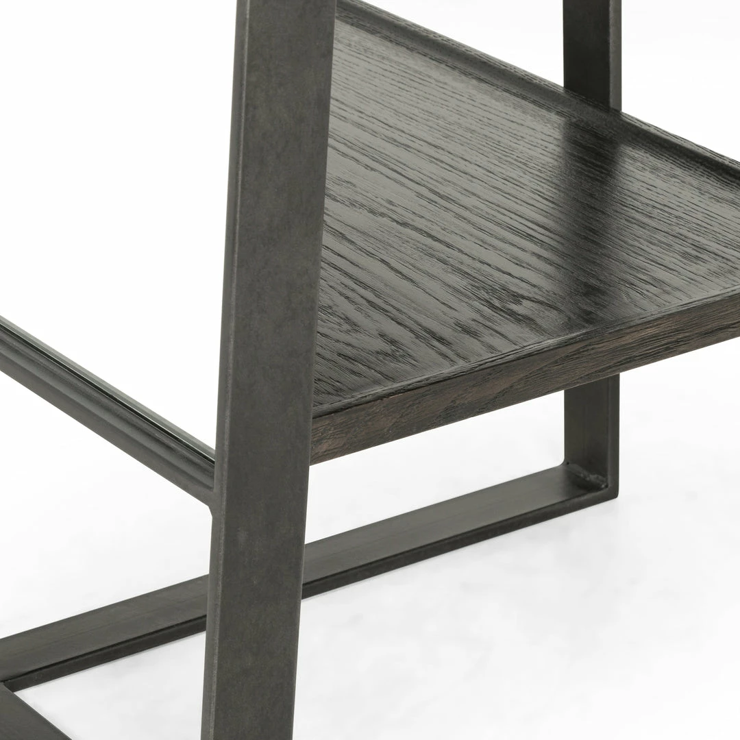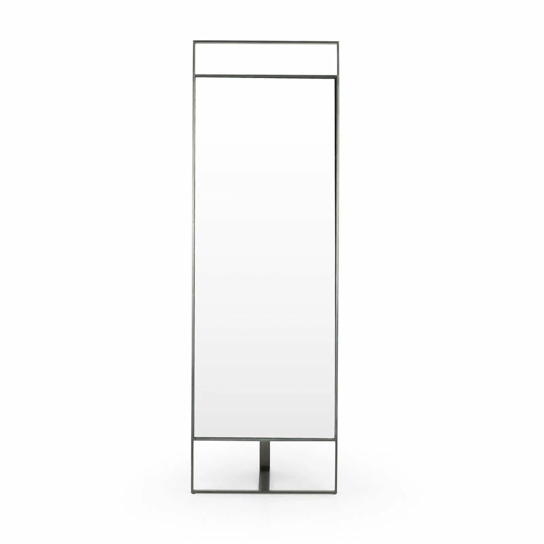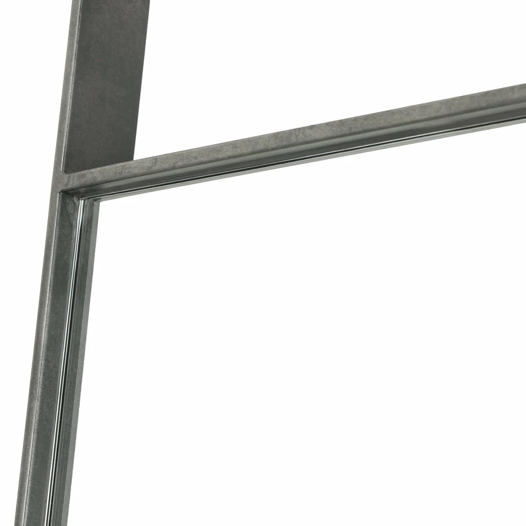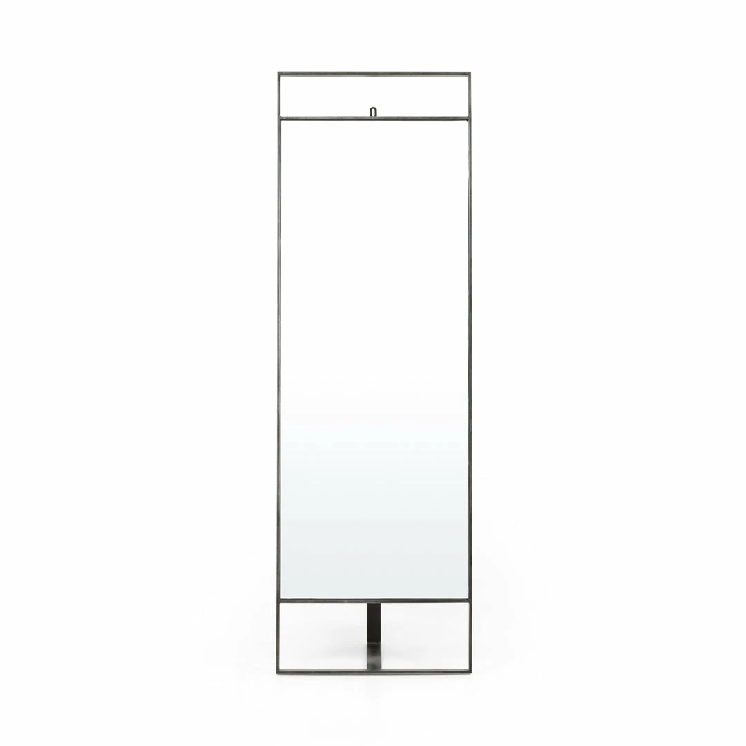 Reflect style and function alike. Behind a rectangular mirror framed in a rustic black finish, dual shelves and a single rack await clothing and shoes – perfect for planning the next day’s attire.