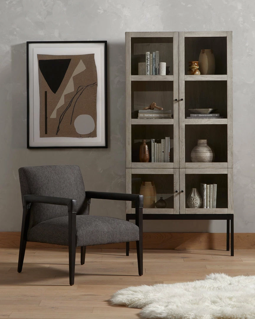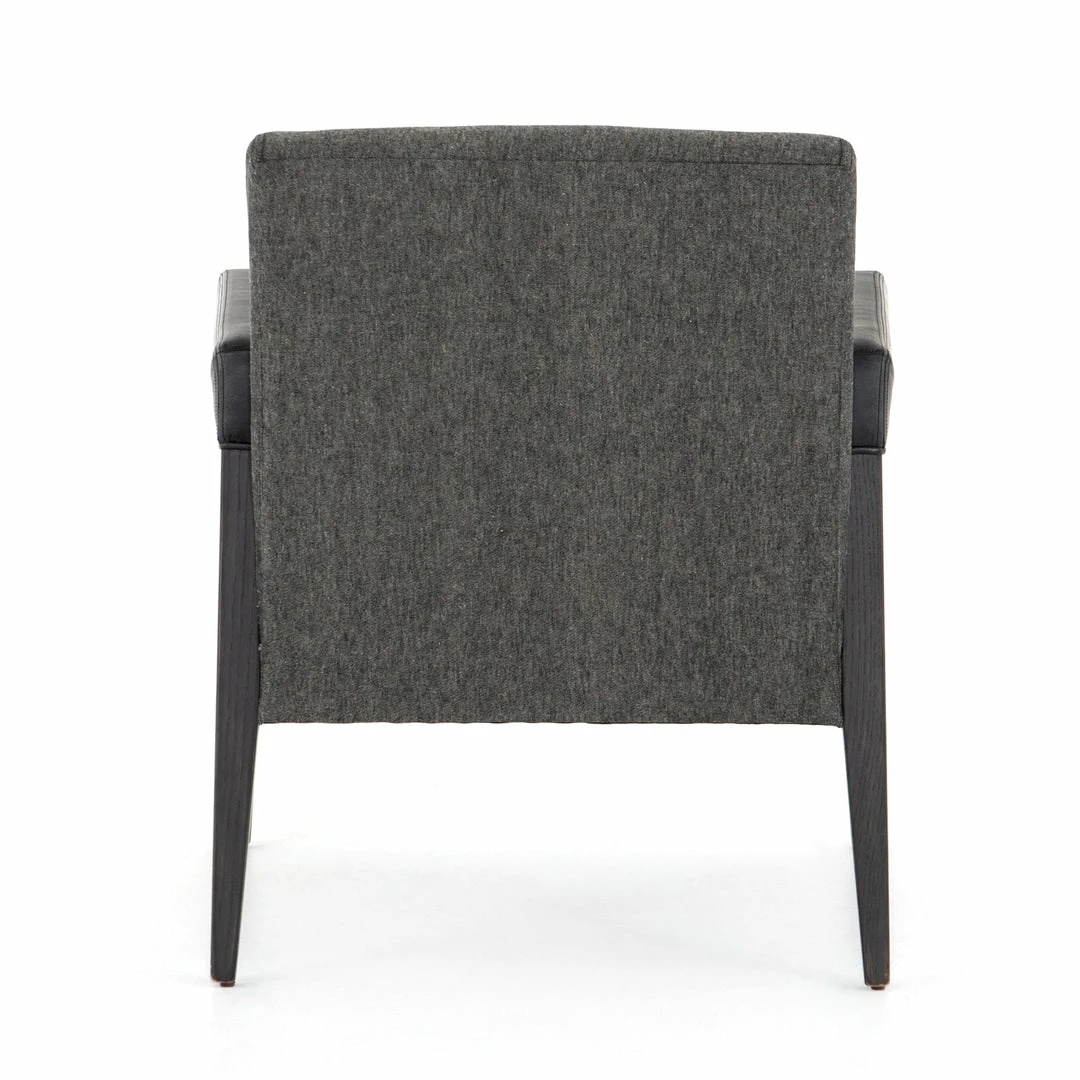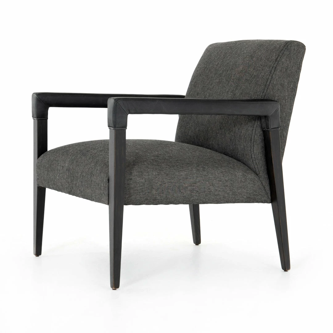 Elegance is no exaggeration. Slim, tapered nettlewood with arms wrapped in vintage leather frames a floating seat covered in a natural cotton and linen blend.