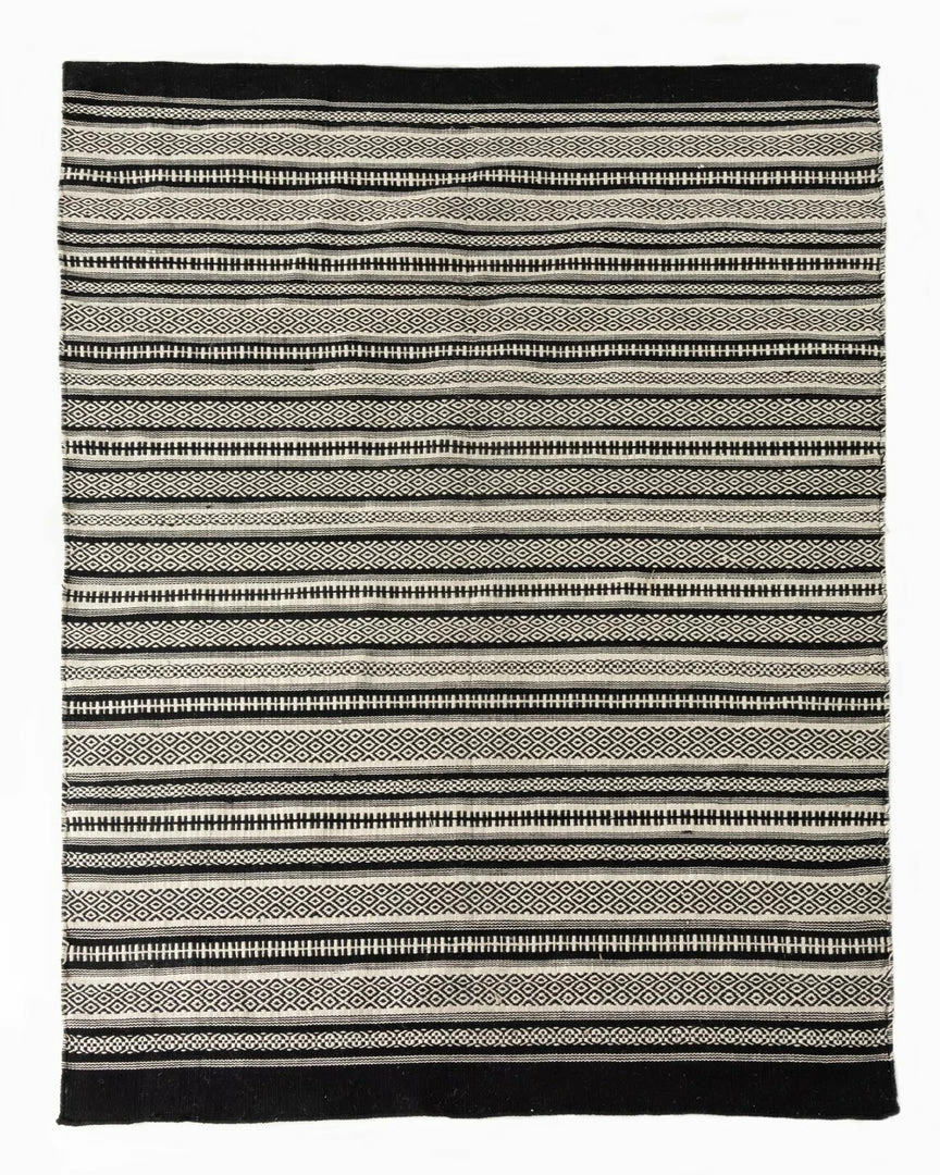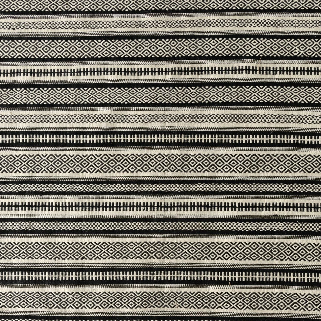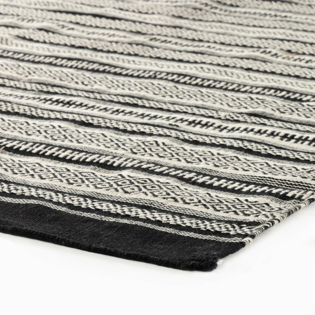 Made entirely from recycled materials, a graphic black-and-white pattern brings eye-catching contrast to this outdoor rug. Store inside during inclement weather.