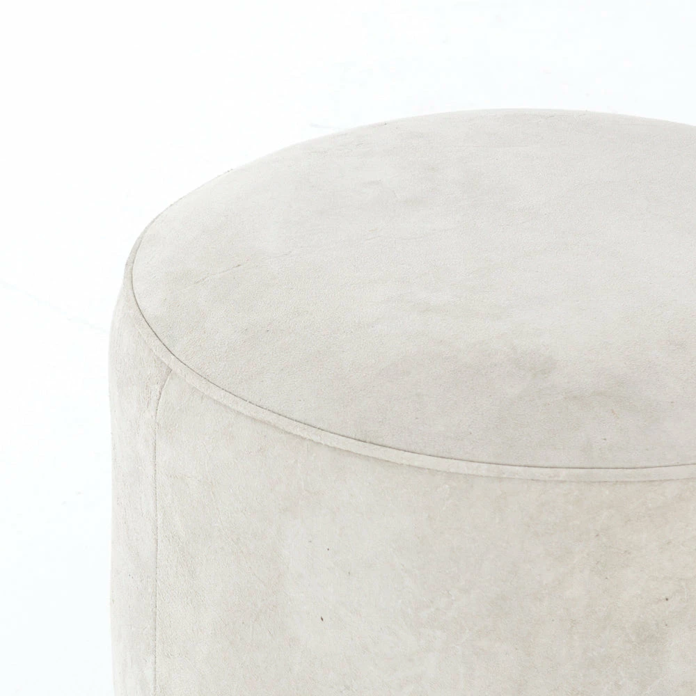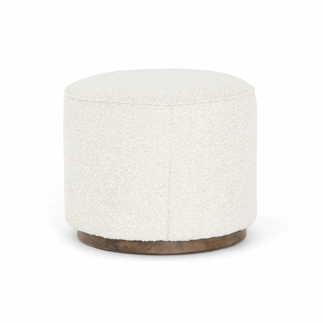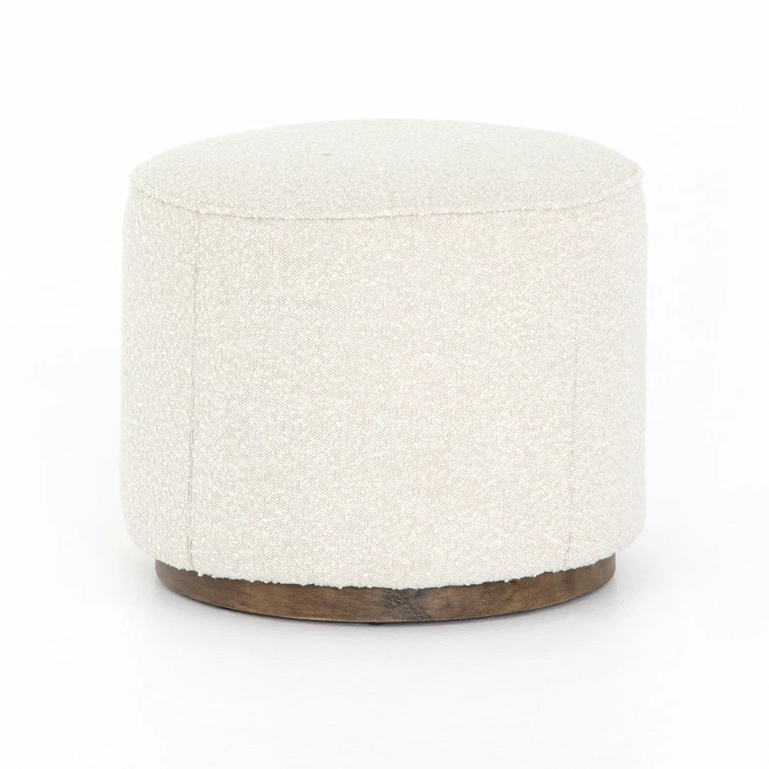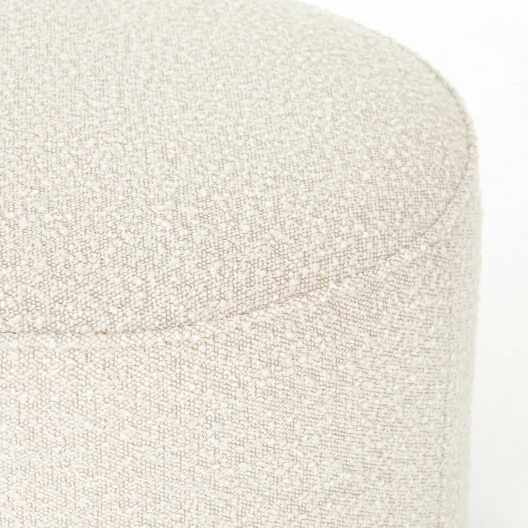 This round ottoman of textural cream boucle can be placed just about anywhere, bringing with it a hip retro vibe.