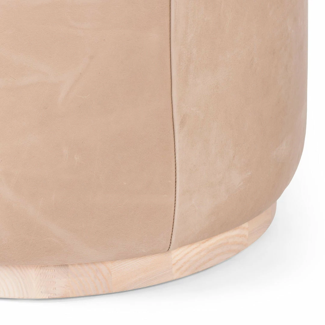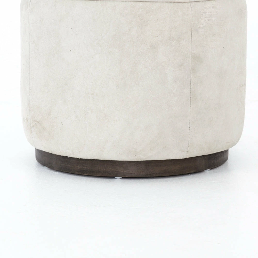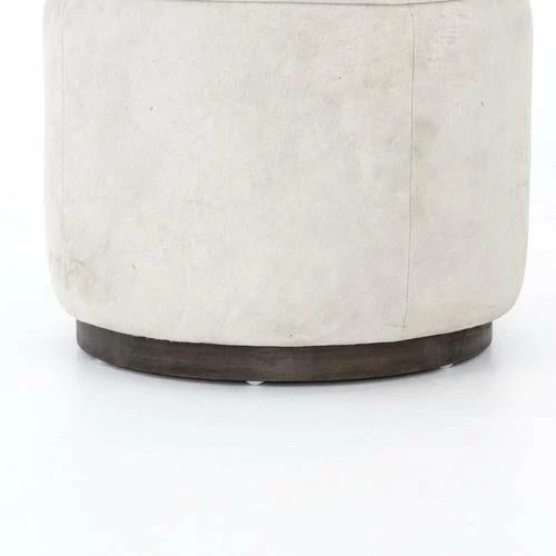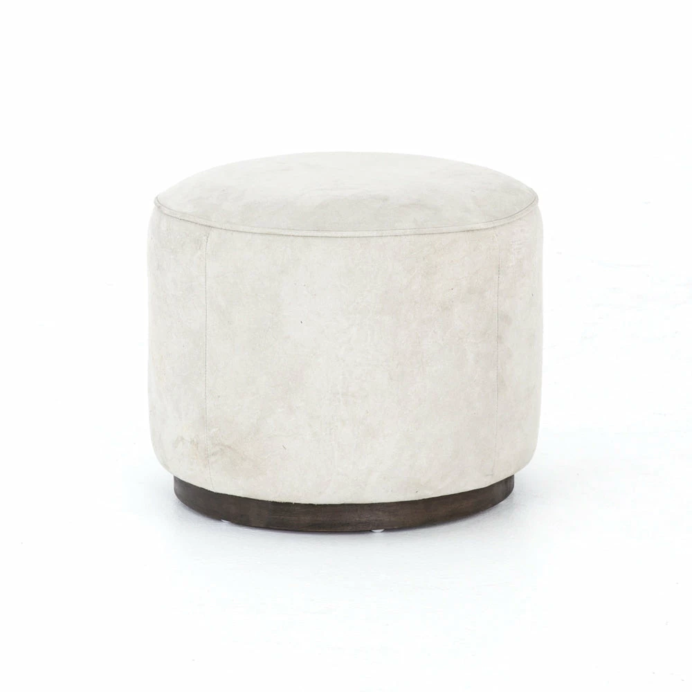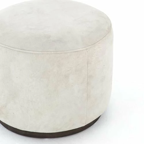 This round ottoman of textural cream boucle can be placed just about anywhere, bringing with it a hip retro vibe.