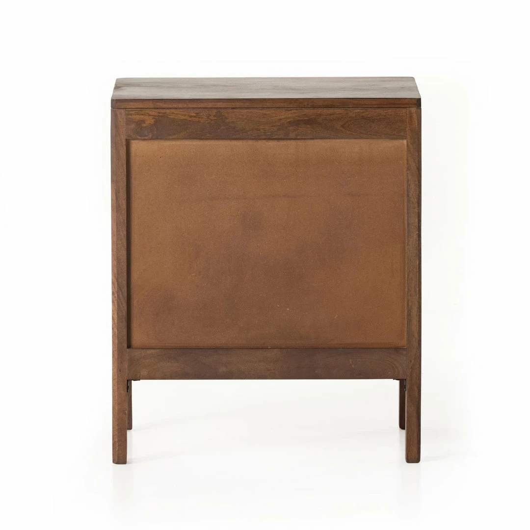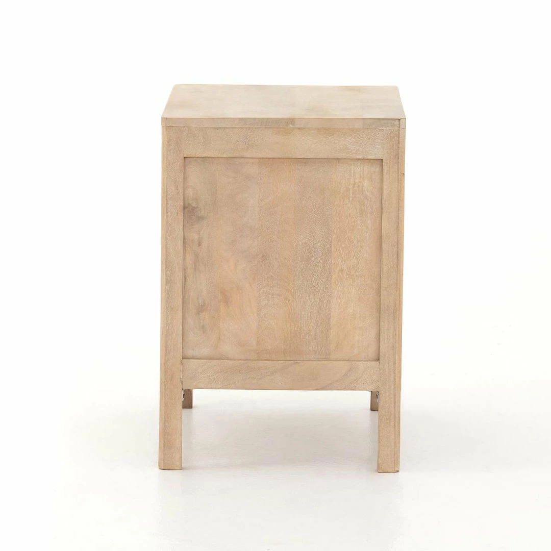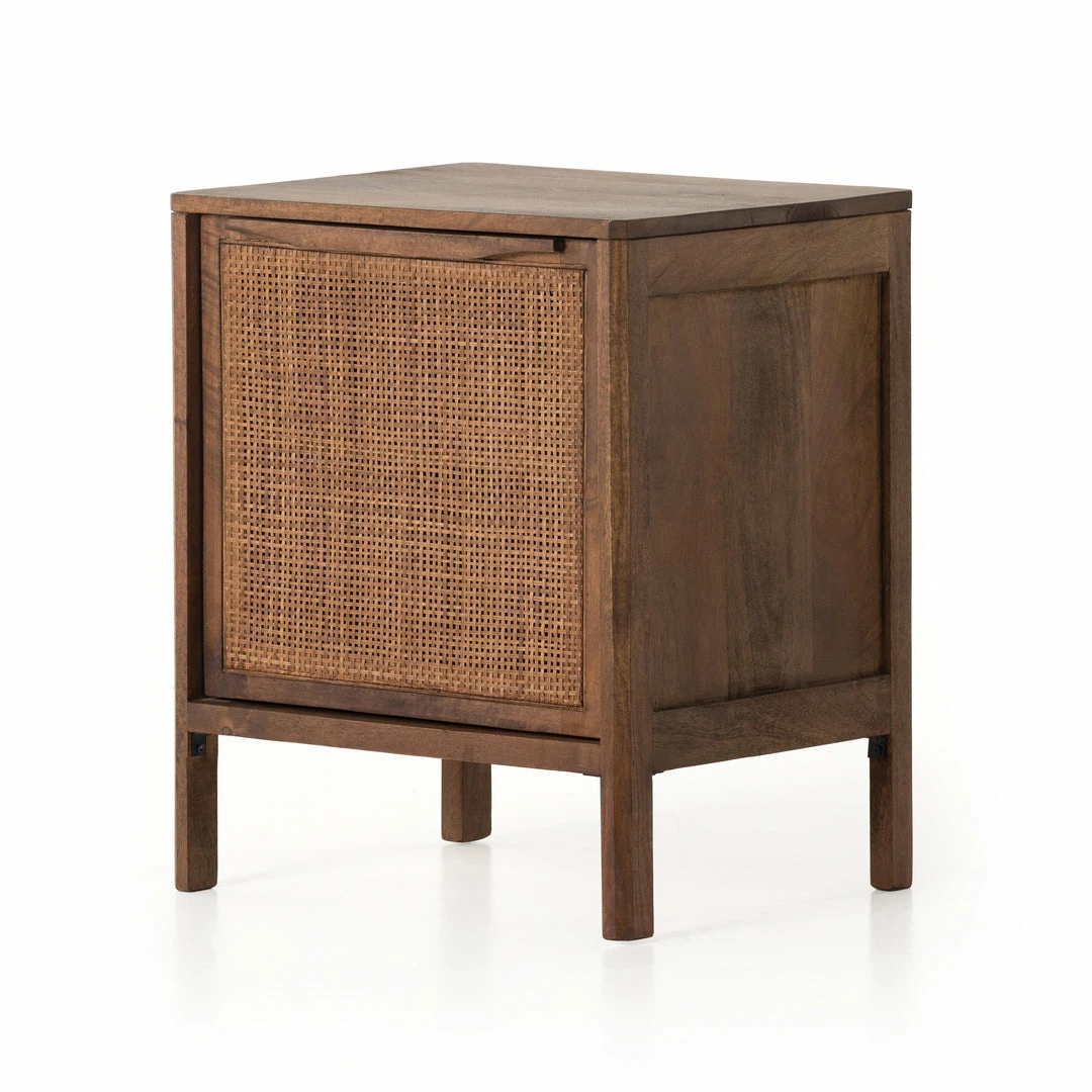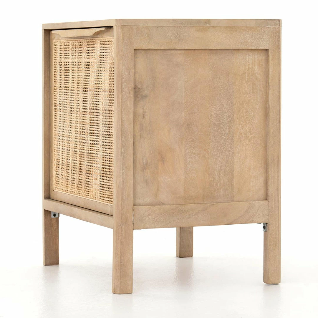 Natural mango frames inset woven cane, for a light, textural look with fresh organic allure. Removable interior shelf for clever convenience.