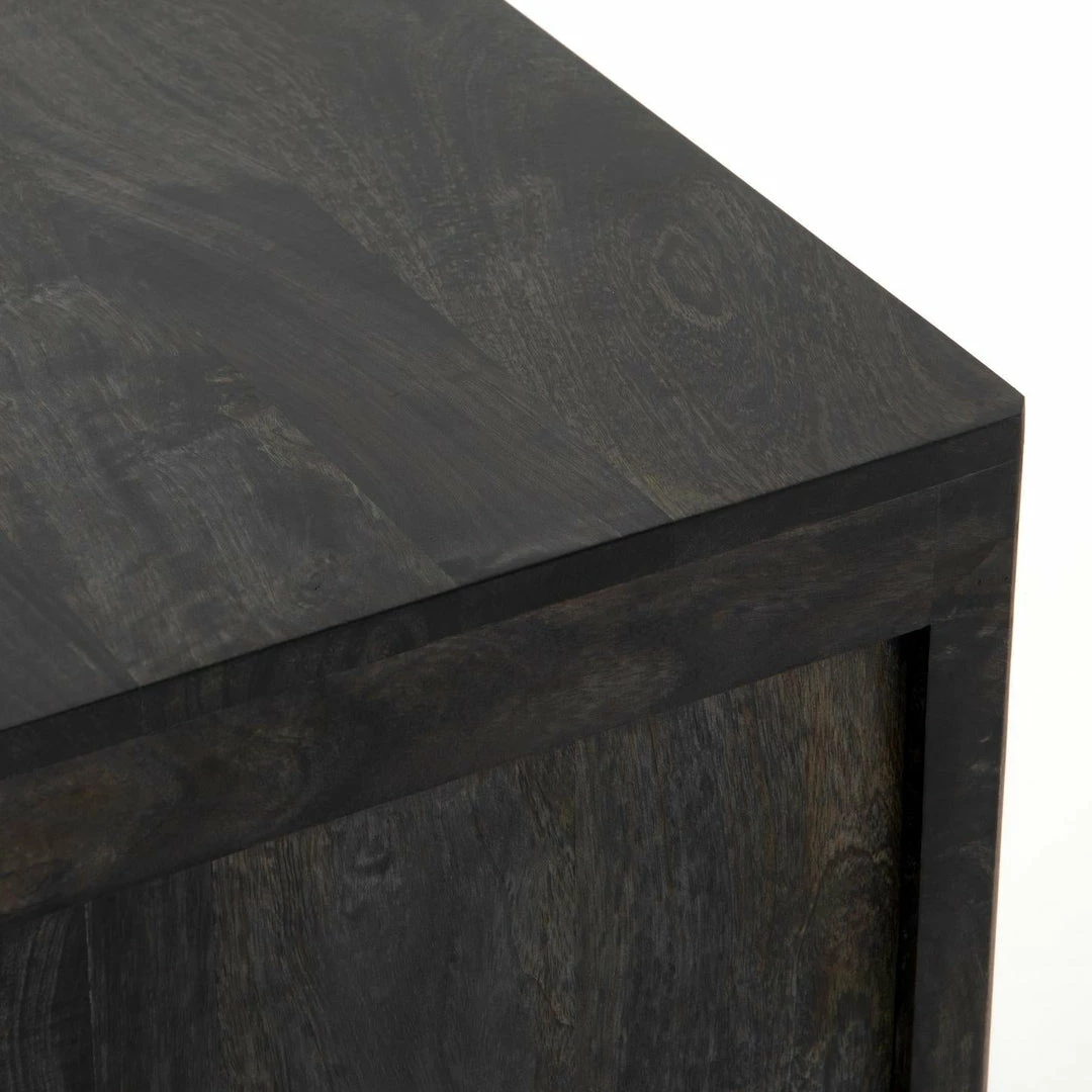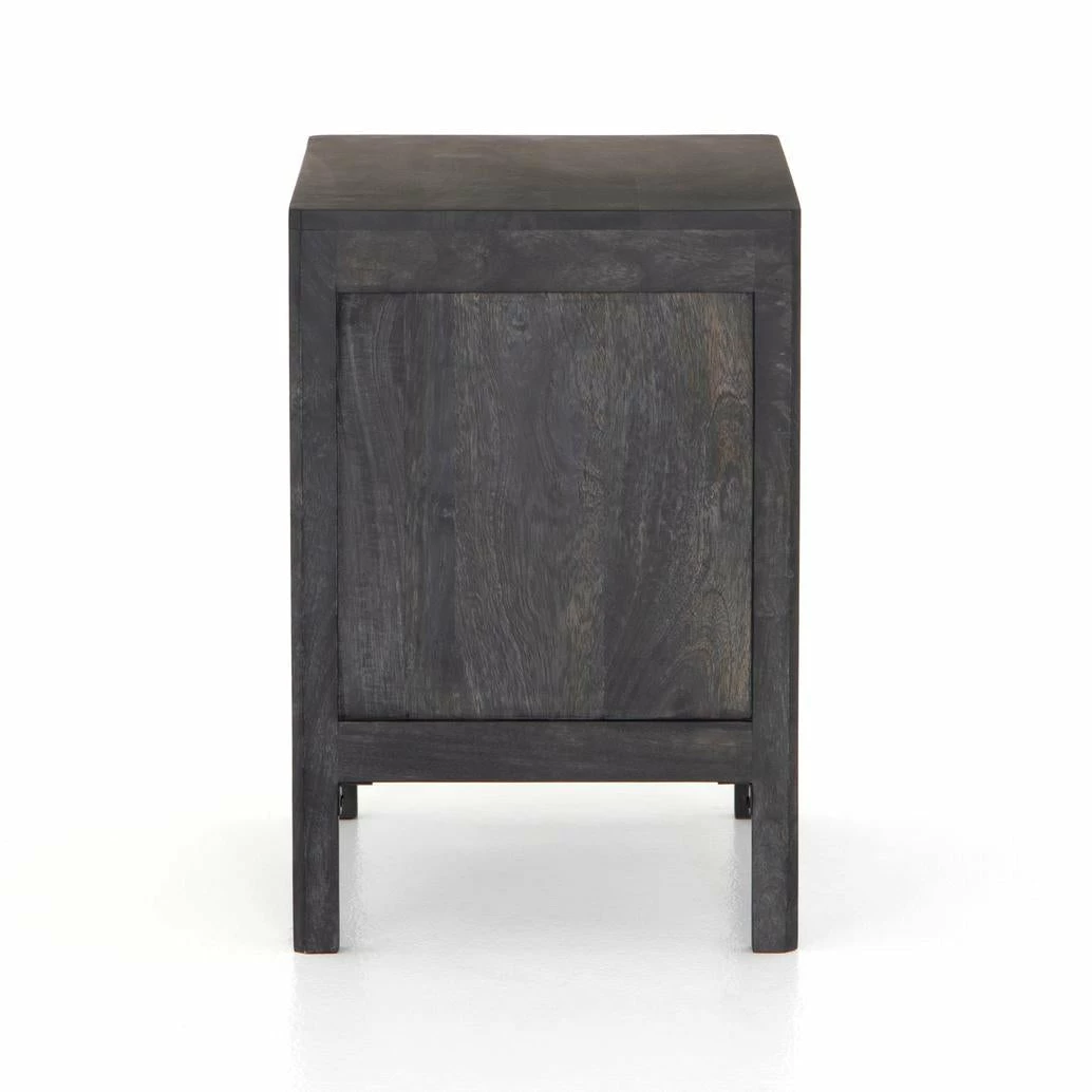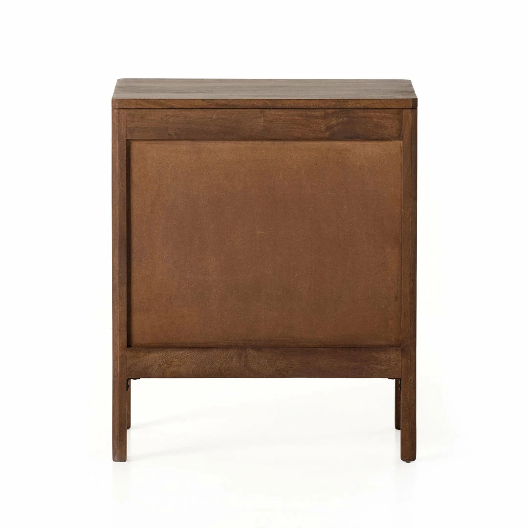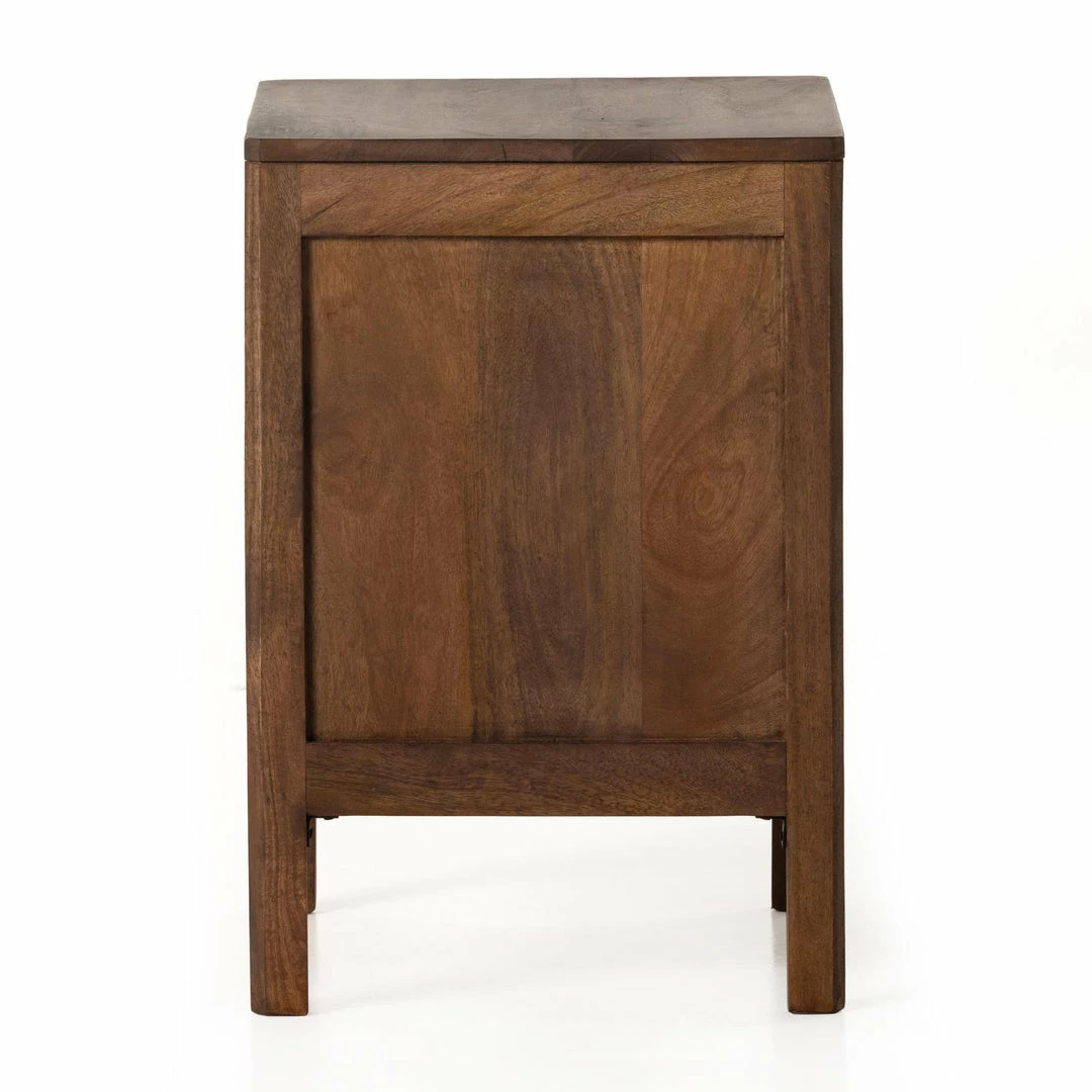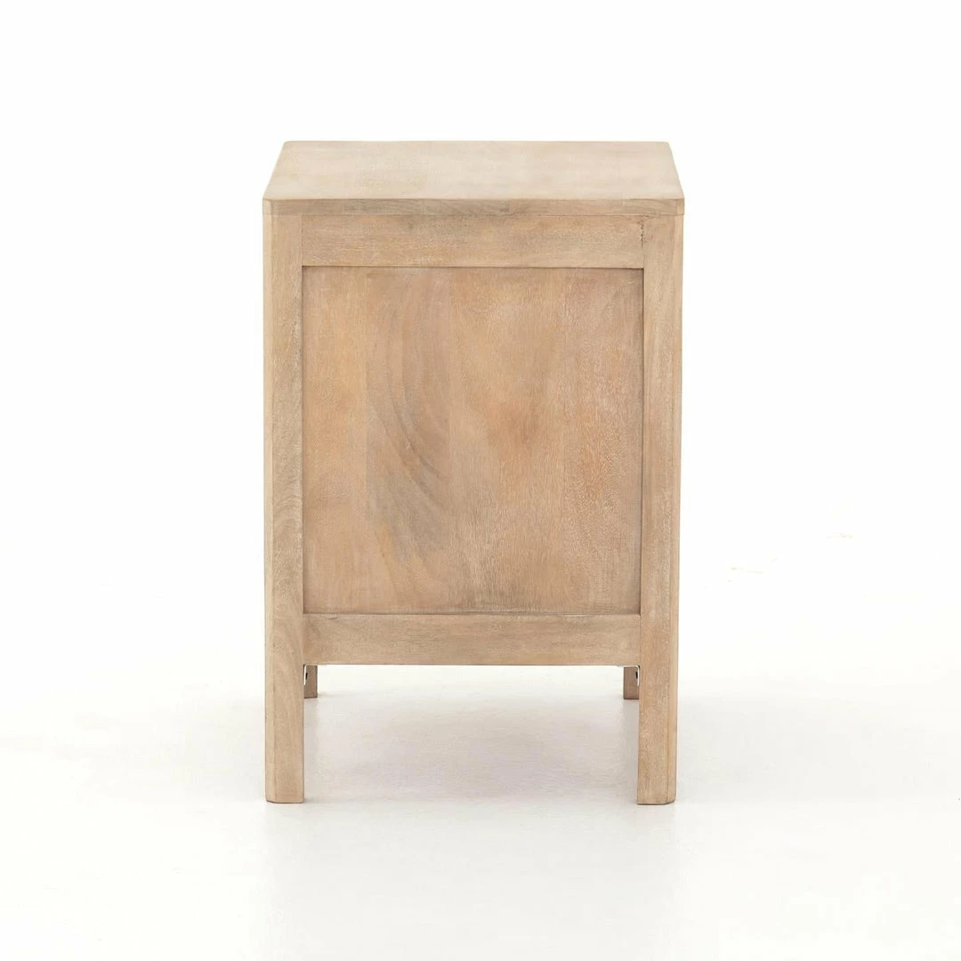 Natural mango frames inset woven cane, for a light, textural look with fresh organic allure. Removable interior shelf for clever convenience.