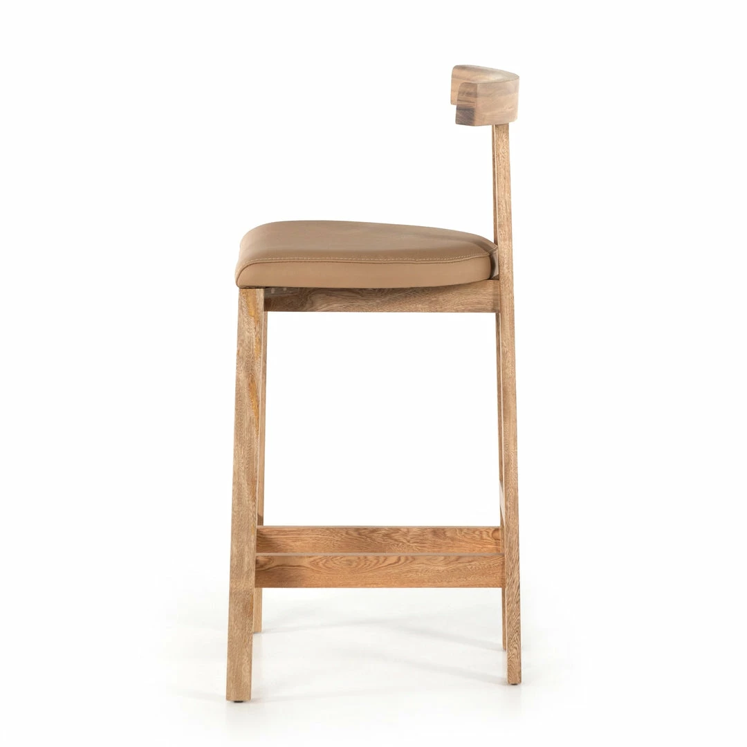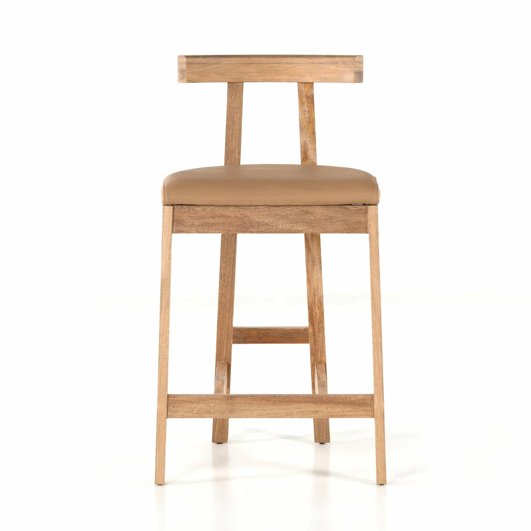 Opt for a beautifully monochromatic look inspired by Greek design. Solid Rosa Morada forms a T-shape frame for light tan top-grain leather seating perfectly sized for the counter.