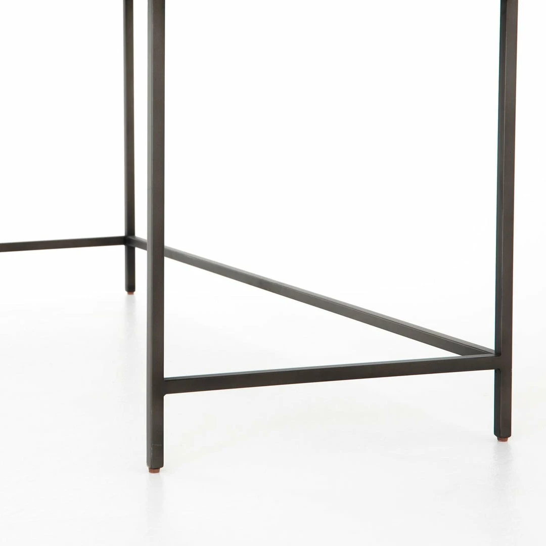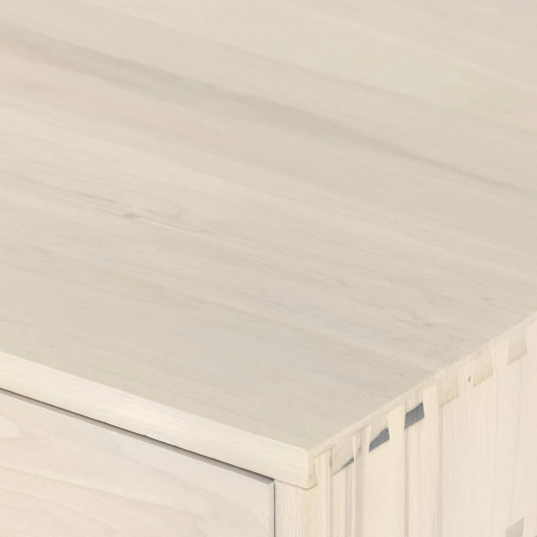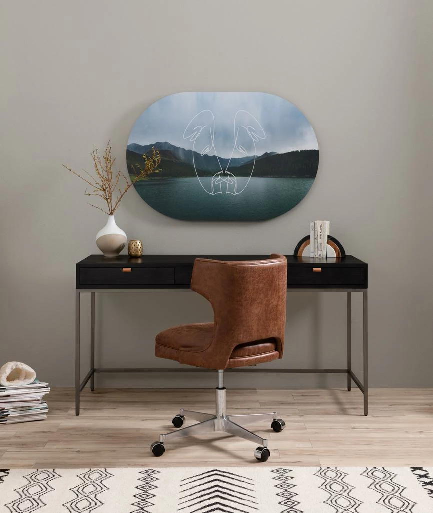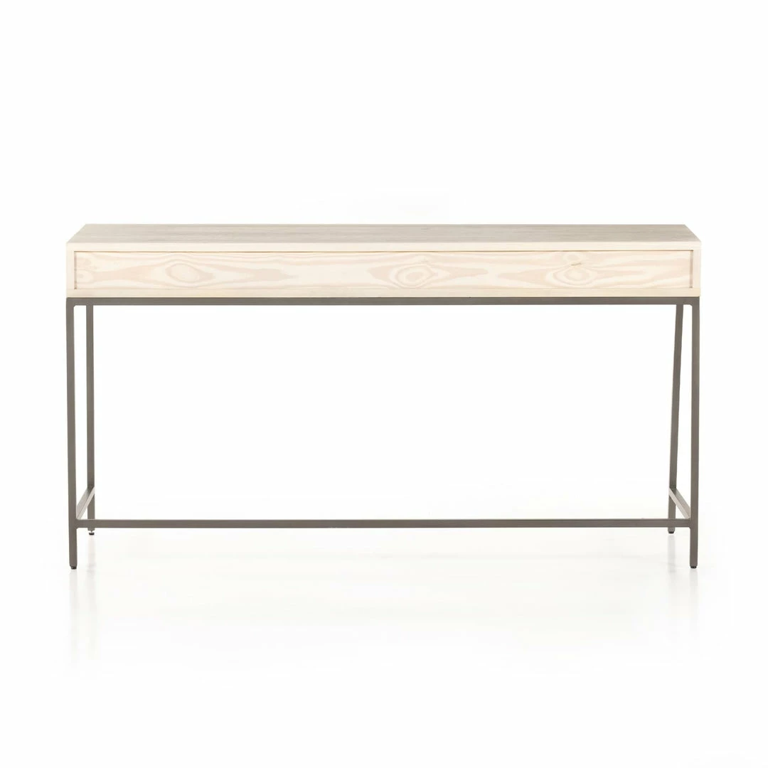Inspired by clean mid-century design, greyish auburn poplar offers generous desk storage by way of three spacious drawers, with a fully finished back plus metal-secured leather pulls for an element of surprise. Great solo or paired with matching corner desk, file cabinet or credenza.