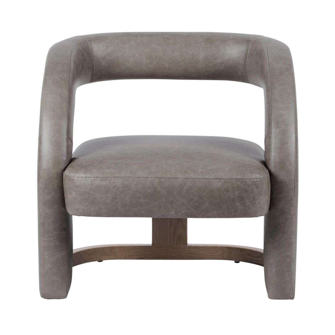 Curves ahead. An airy, tightly upholstered frame seems to float above a solid oak base. Covered in our exclusive 100% top-grain leather with subtle distressing rich in character.