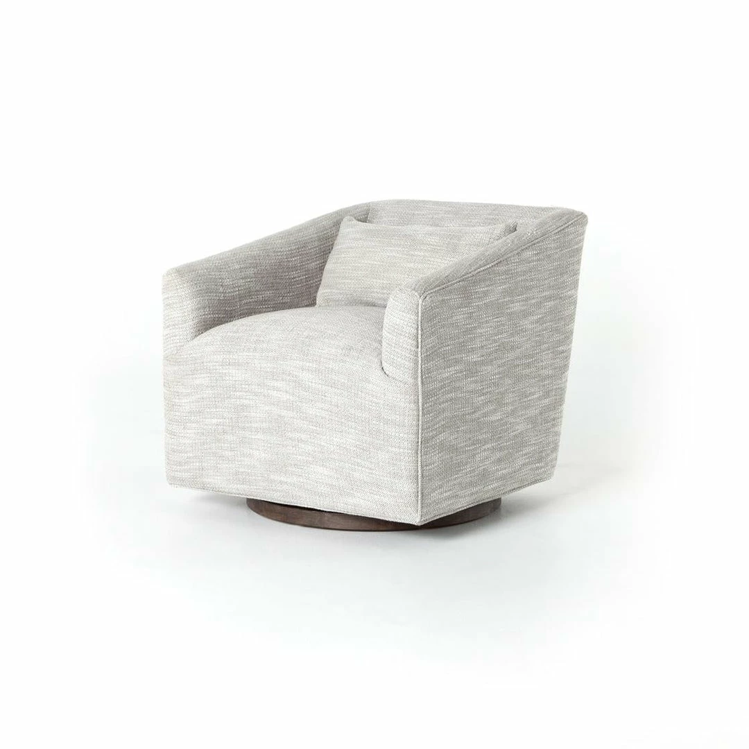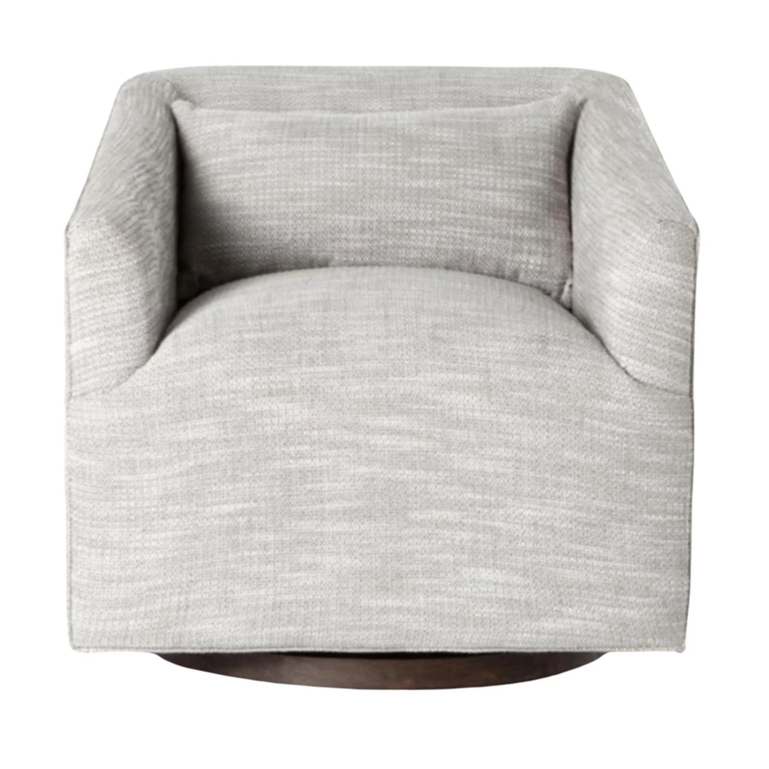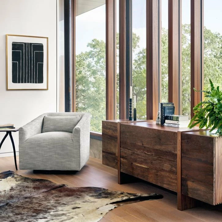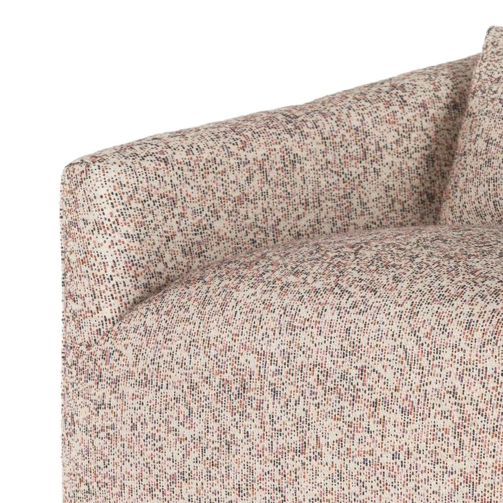 Small scale, substantial comfort. Precisely tailored seating in a pebbled fabric that offers a touch of light movement.