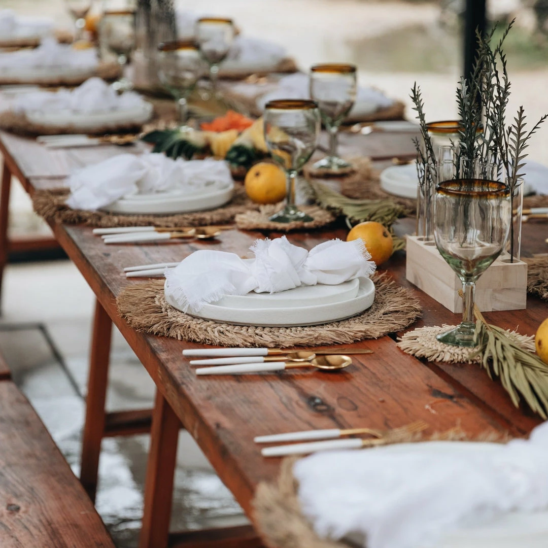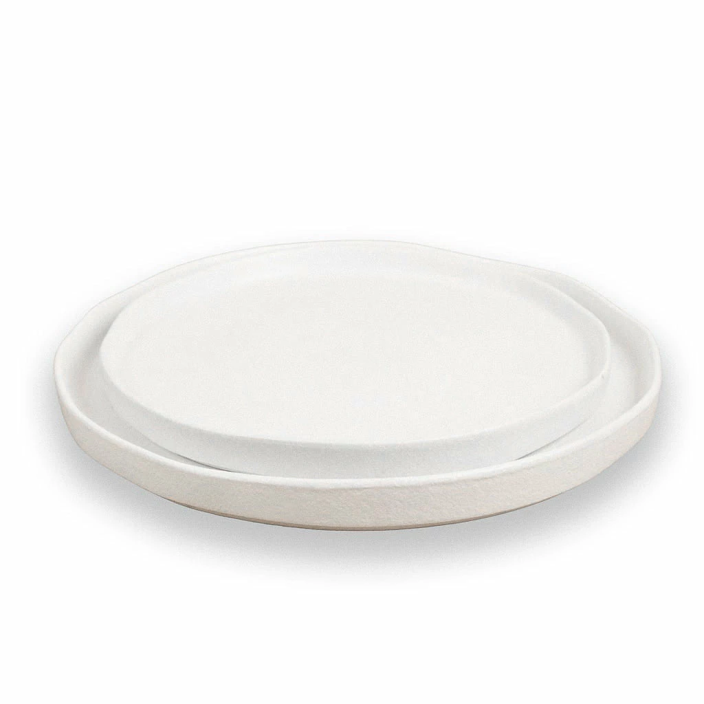 Dress up your tablescape with these matte glazed ceramic plates. They are made with a slight texture on the bottom of them to give an organic feel. This set is finished with a food-safe finish and is also microwave safe.