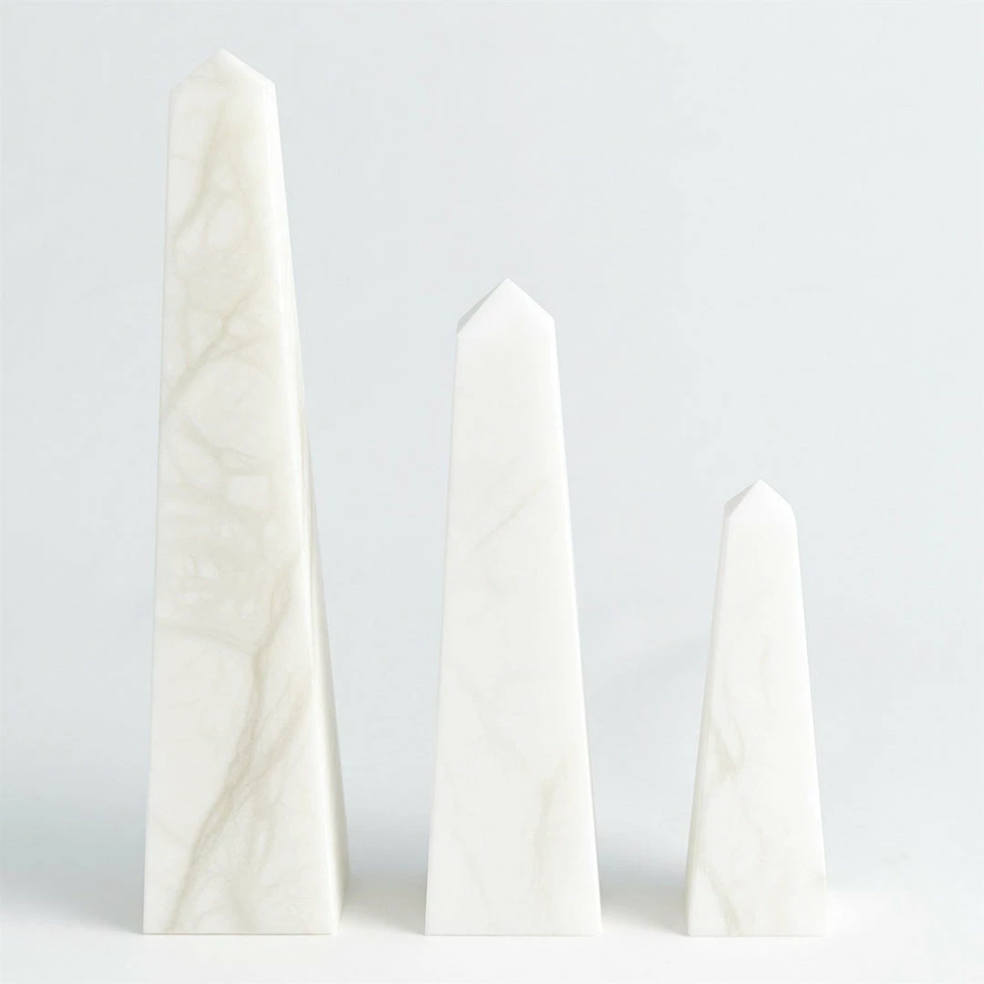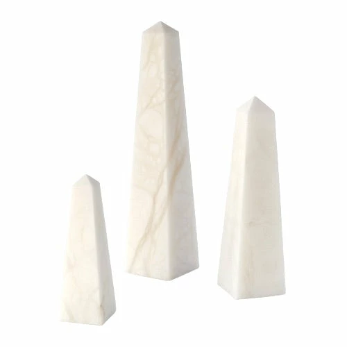 Inspired by the ancient Egyptians, these structures were used as monumental statements in architecture and landscaping. Beautifully carved alabaster pieces. As alabaster is a natural product, please be aware that there will always be variations in veining and color. This is to be expected and makes every alabaster product uniquely your own