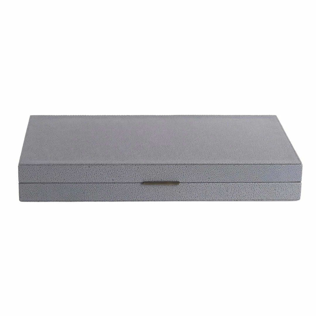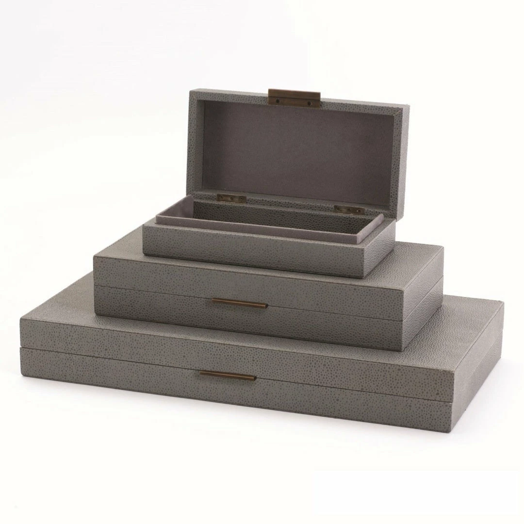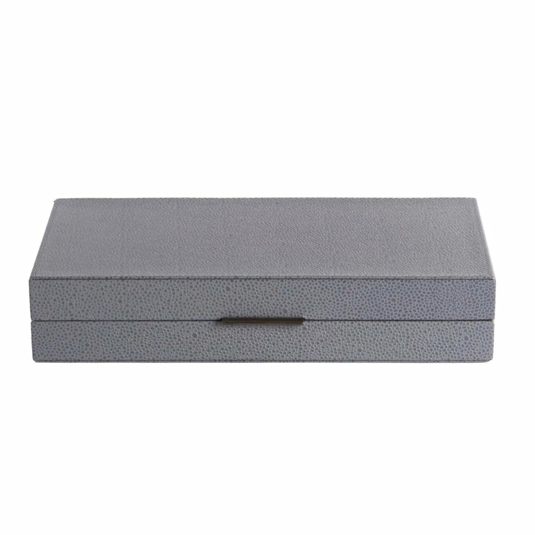 The perfect subtle graining of leather with an understated bronze slim knob, bronze color interior, and suede bottom.