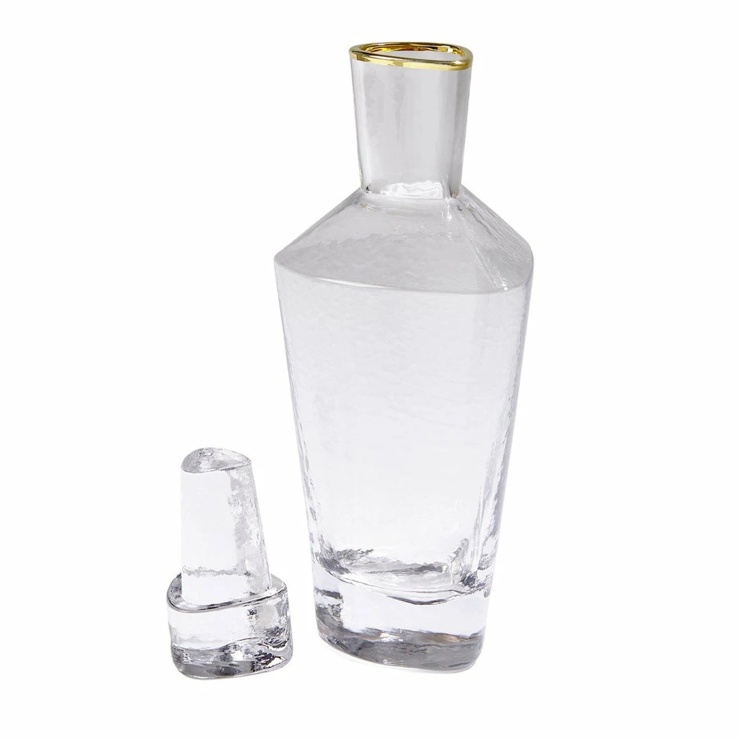 Mouth-blown glass with hammered texture and handpainted gold rim.