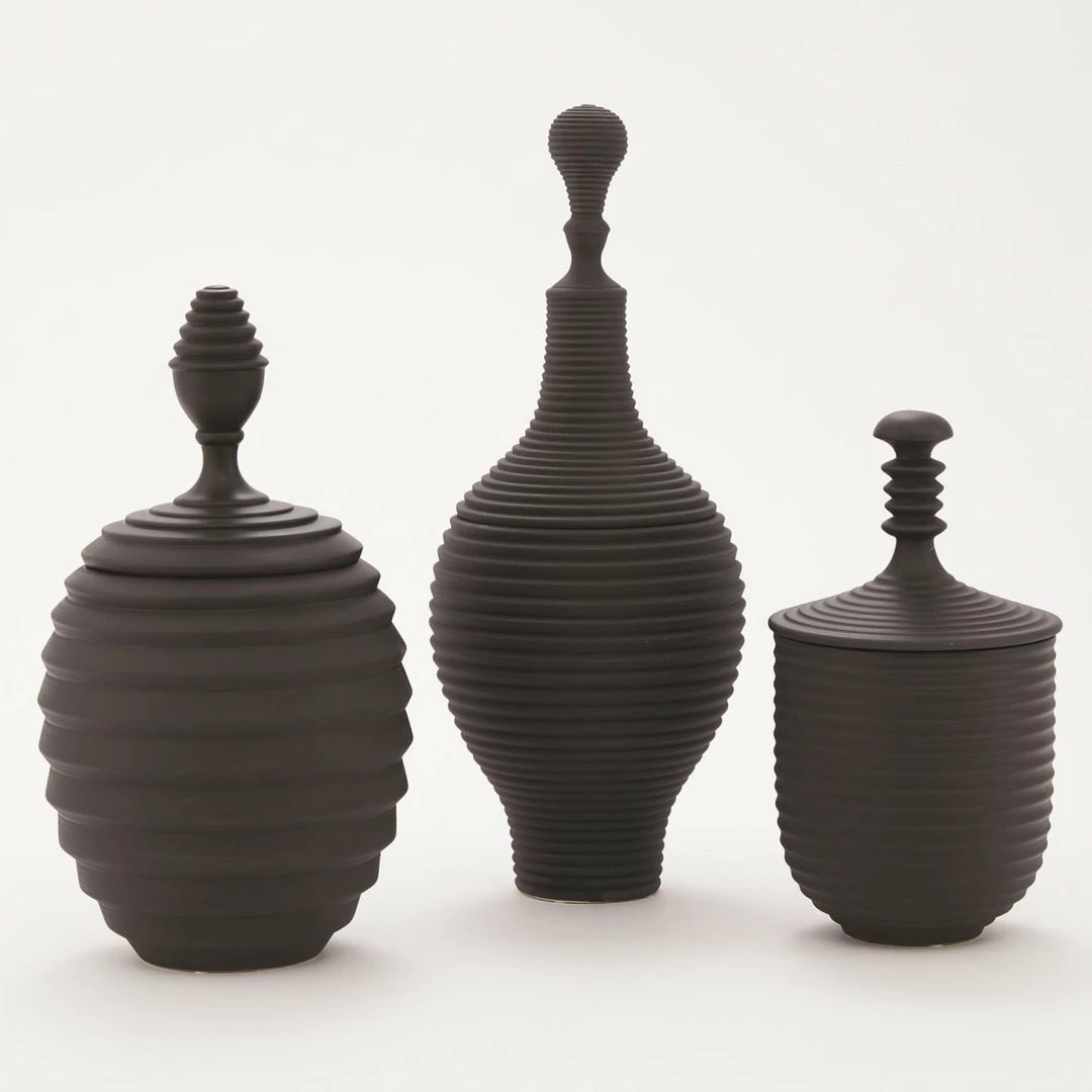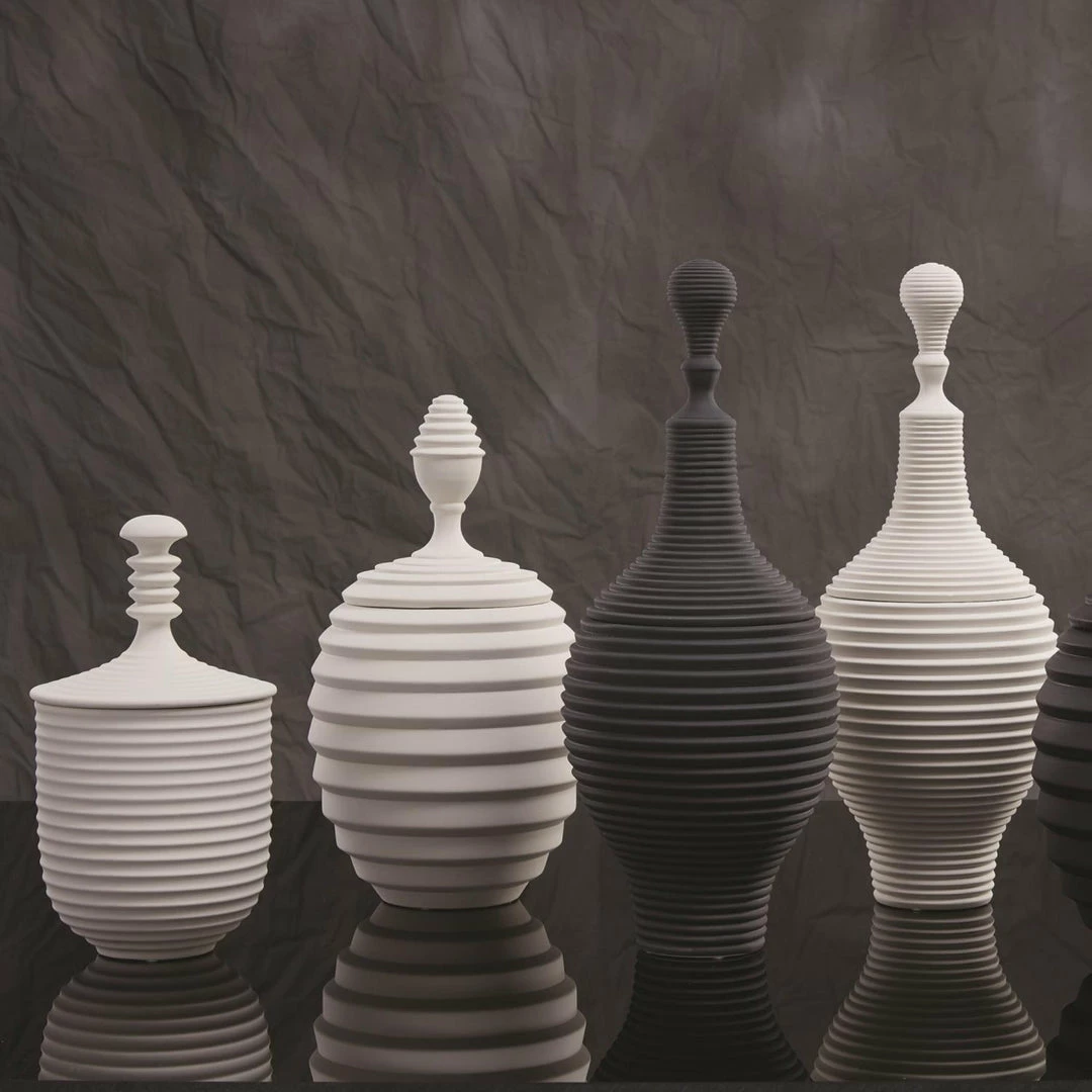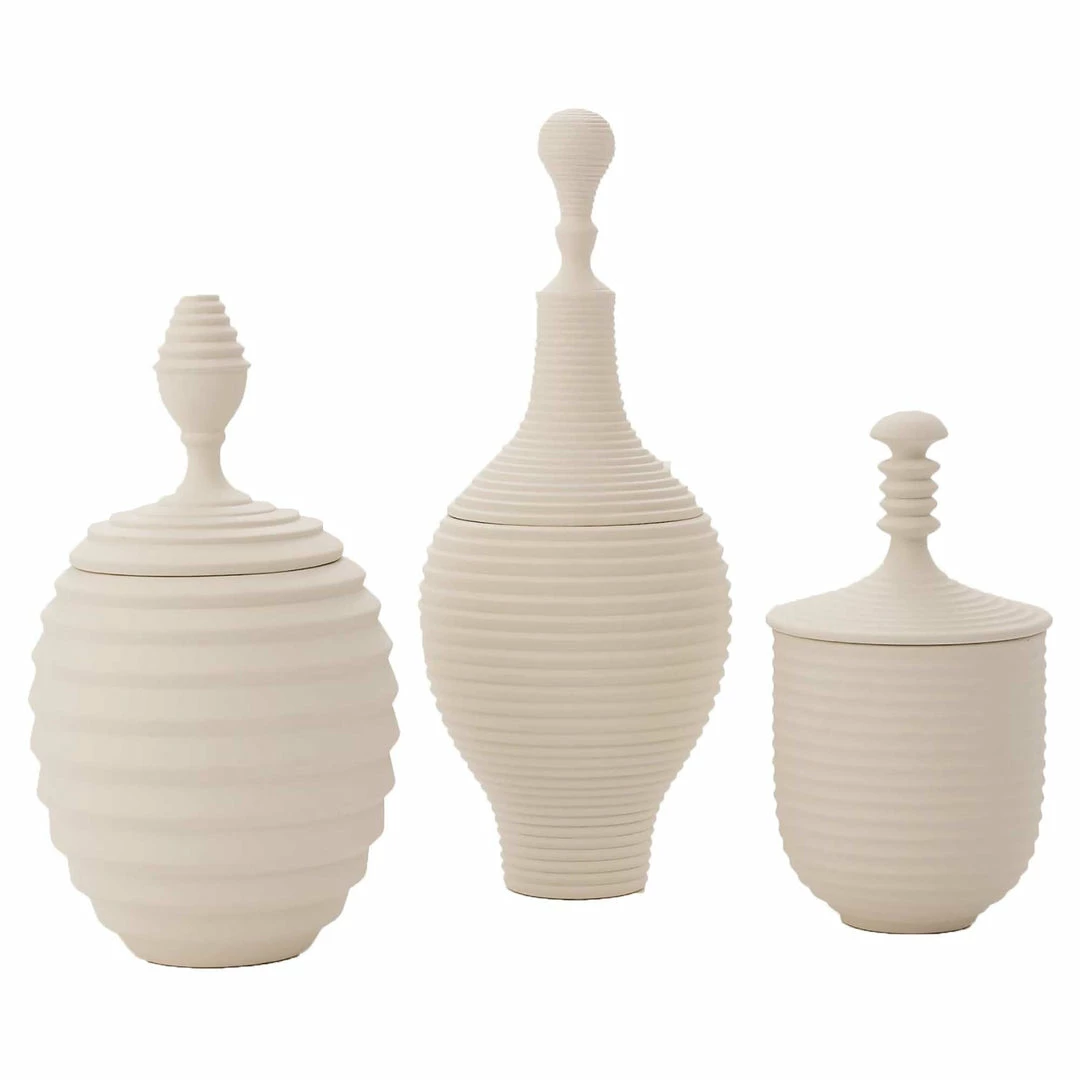 Part earthy and part feminine elegance, the Orion Jars will grace your space with complex matte textured neutrals. One of each is highly recommended!