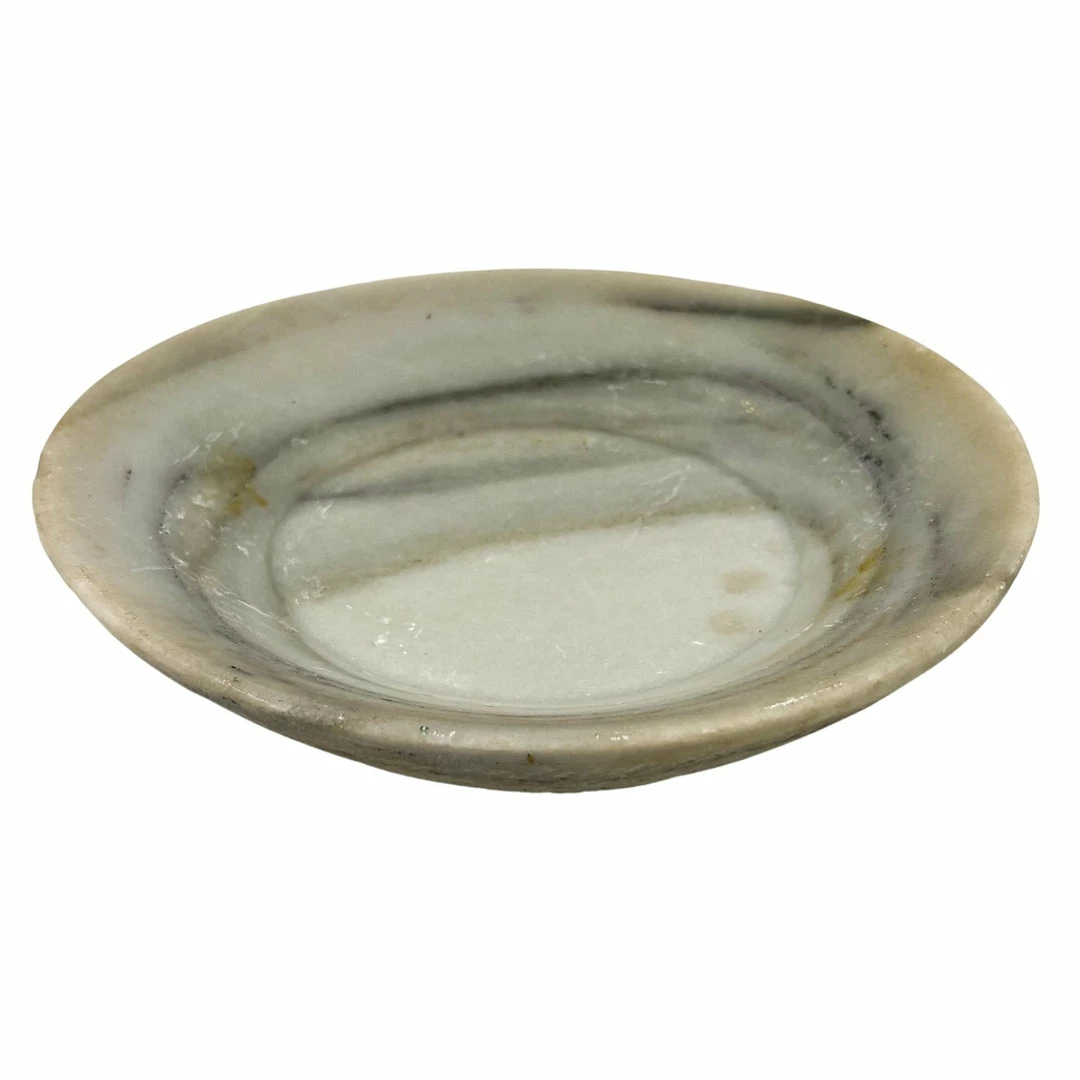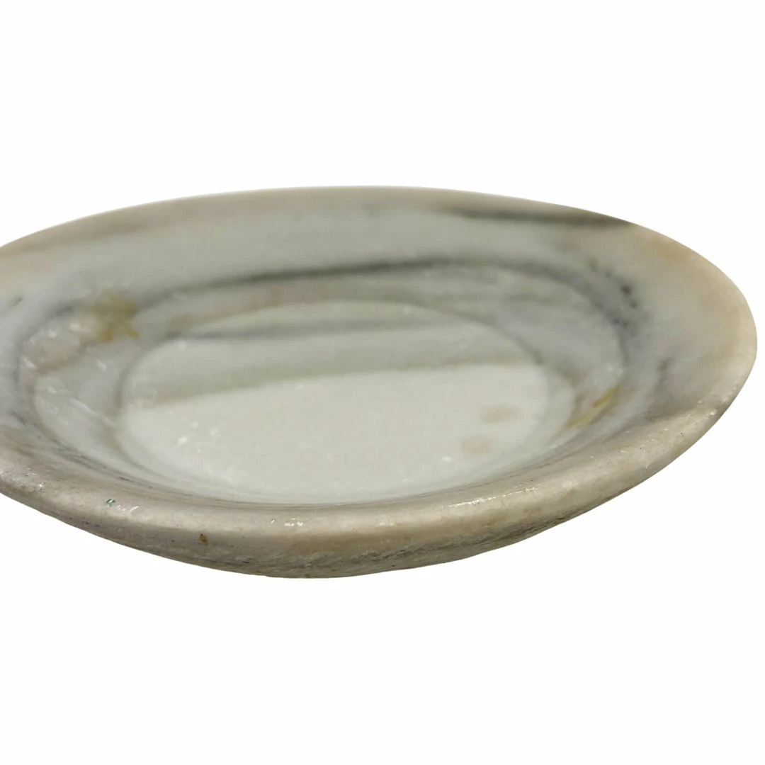 Found Vintage Sage Marble Dish is handmade from vintage stoneware featuring lines of variegated green marble that have been shaped and polished. Please note, as, with all handmade items, the beauty is in the imperfection. Small cracks, chips, and slight variations in color are all qualities of its vintage condition and natural beauty.