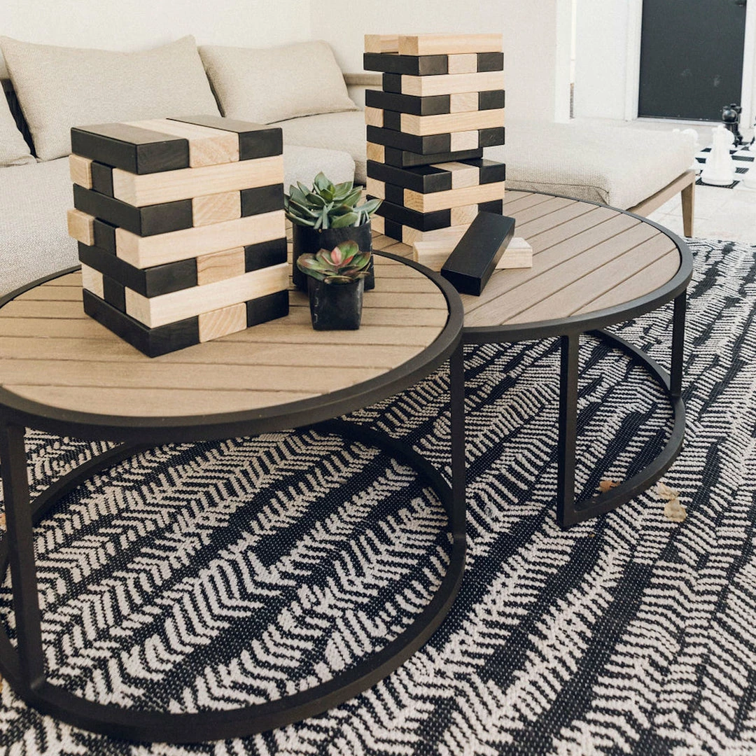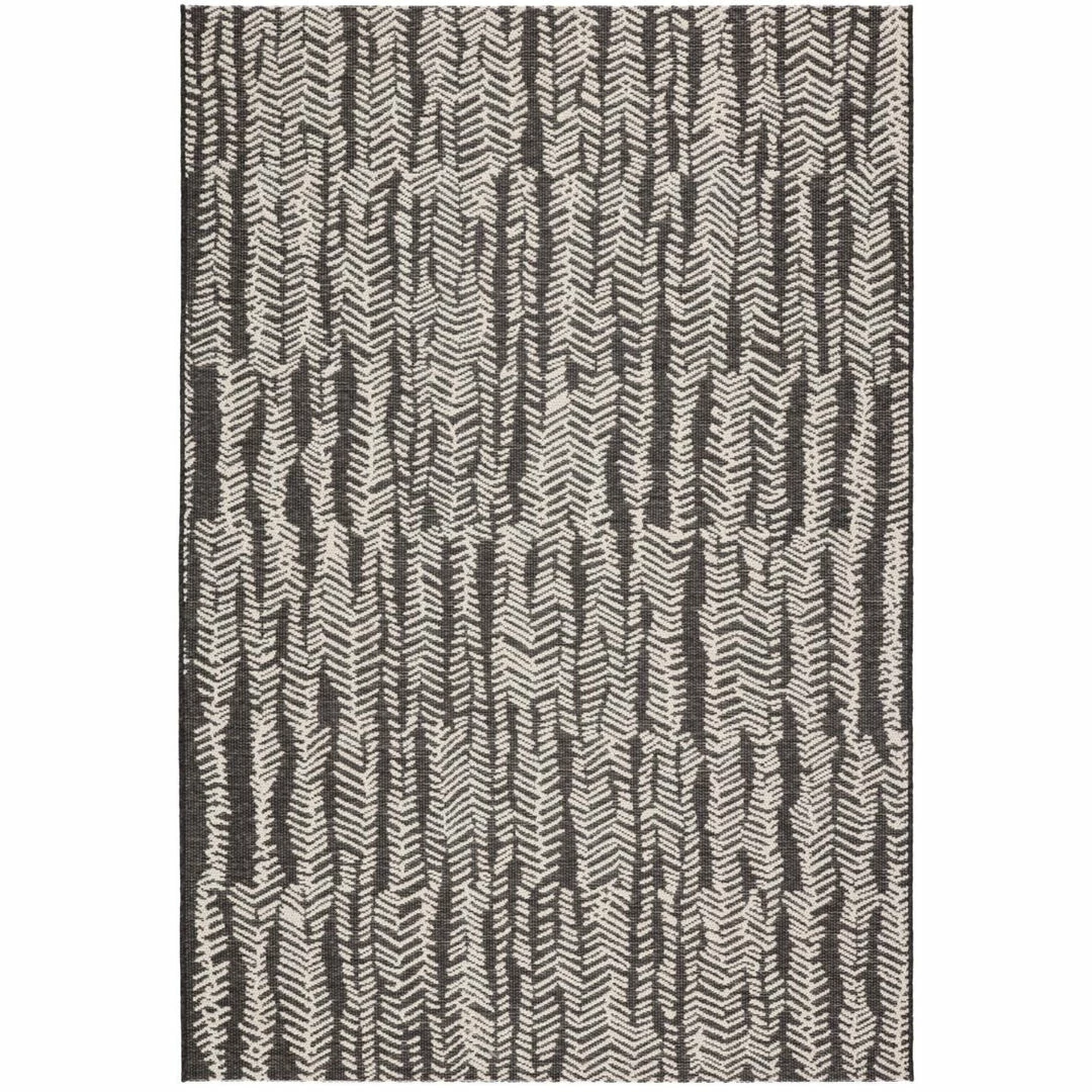 90% Polypropylene 10% Polyester. The Fresno collection lends a relaxed, casual feel to outdoor spaces and high-traffic indoor areas. The black and cream-colored Citali area rug feature an asymmetrical fern frond motif that creates a global look and unique texture. Made of durable polypropylene and polyester, this flatweave rug offers versatility and an easy-care foundation to any space.