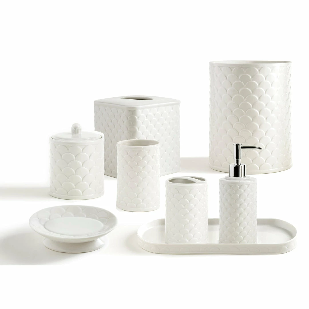 Crafted from finely embossed porcelain, our Scala accessories bring aquatic-inspired style to the bathroom with the elegant scale patterns of each accessory.
