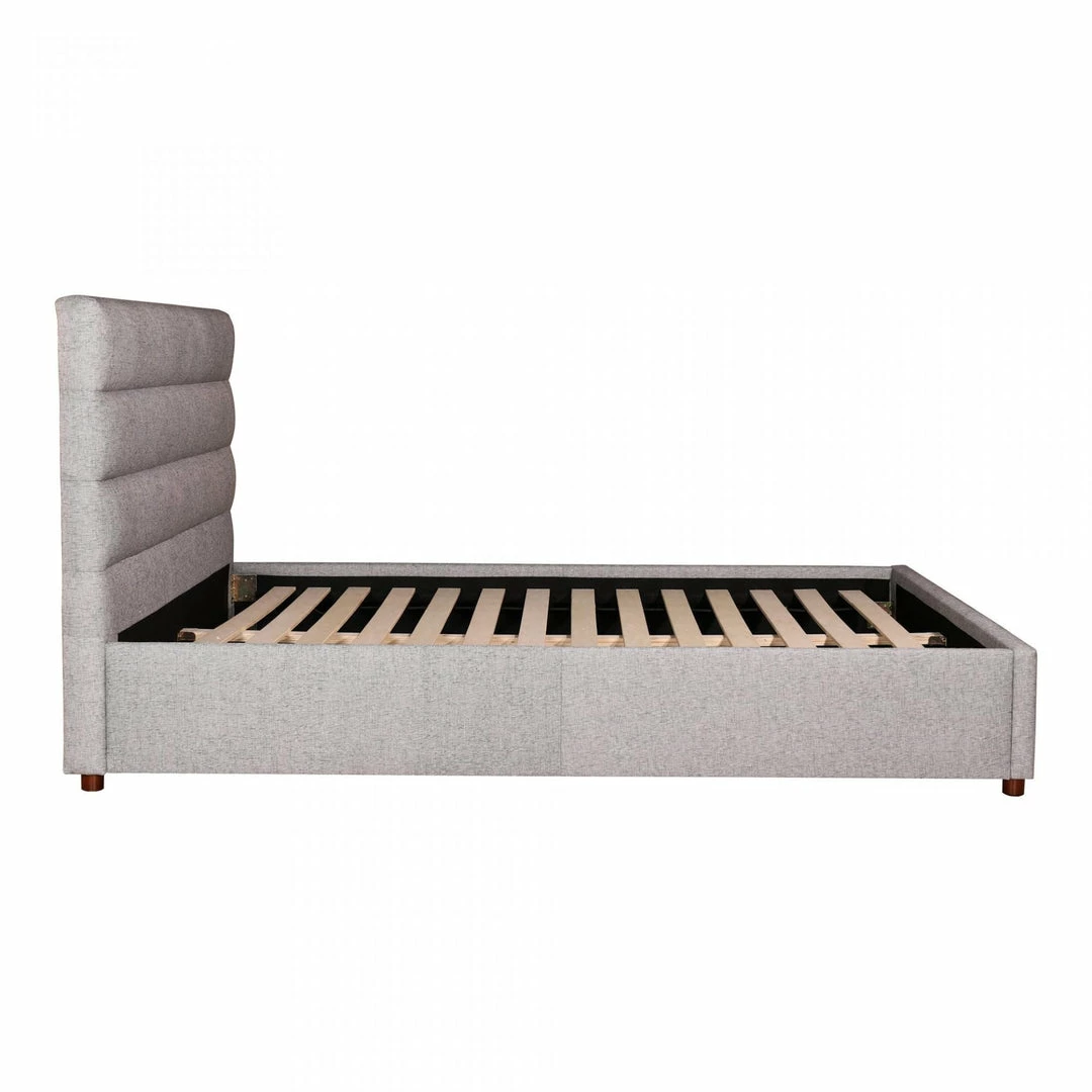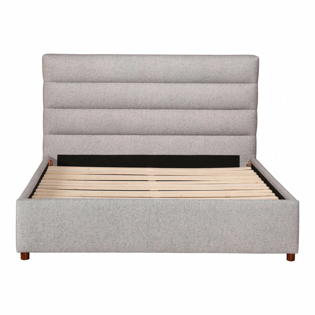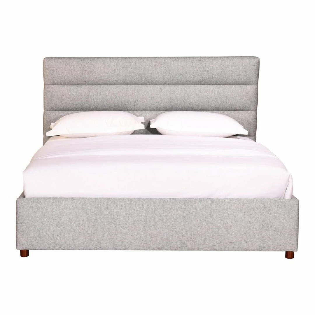 Modern and minimal. Softly upholstered in light grey velvet fabric for a soothing feel before you drift off to dreamland. Lightly stuffed and tufted on top of a solid wood construction for ultimate comfort.