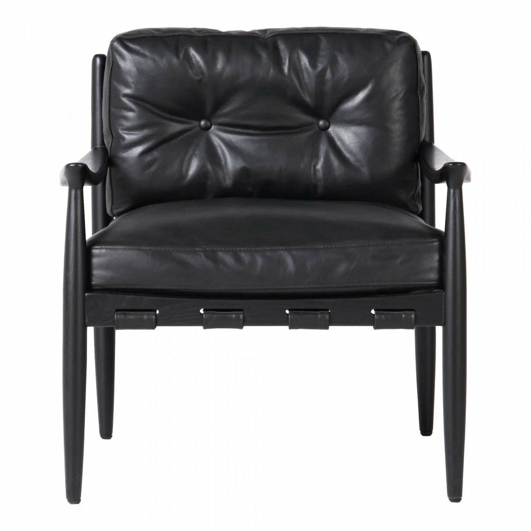 A boldly blocked silhouette with swooped armrests, buttery soft top-grain leather, and solid ash wooden frame modernize this stately accent chair. A button-tufted cushion supports a gentle half-back, and a bonded leather support weave softens a wider seat underneath the feather + foam-filled cushion. In a size that leaves room for added comfort, try it out in the bedroom or living room as a corner or occasional chair with contrasting throw pillows or a woolen blanket.