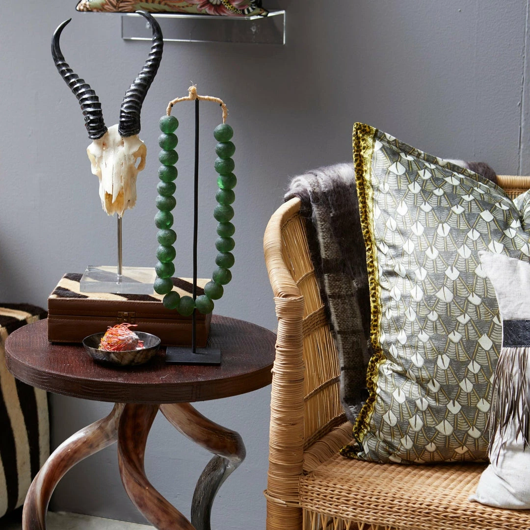 Black finish, made of iron. It transforms a single strand of large Ghanaian glass beads (sold separately) into an elegant sculpture.