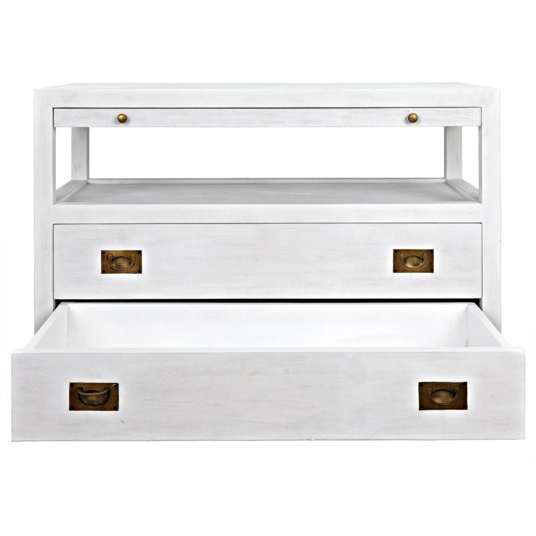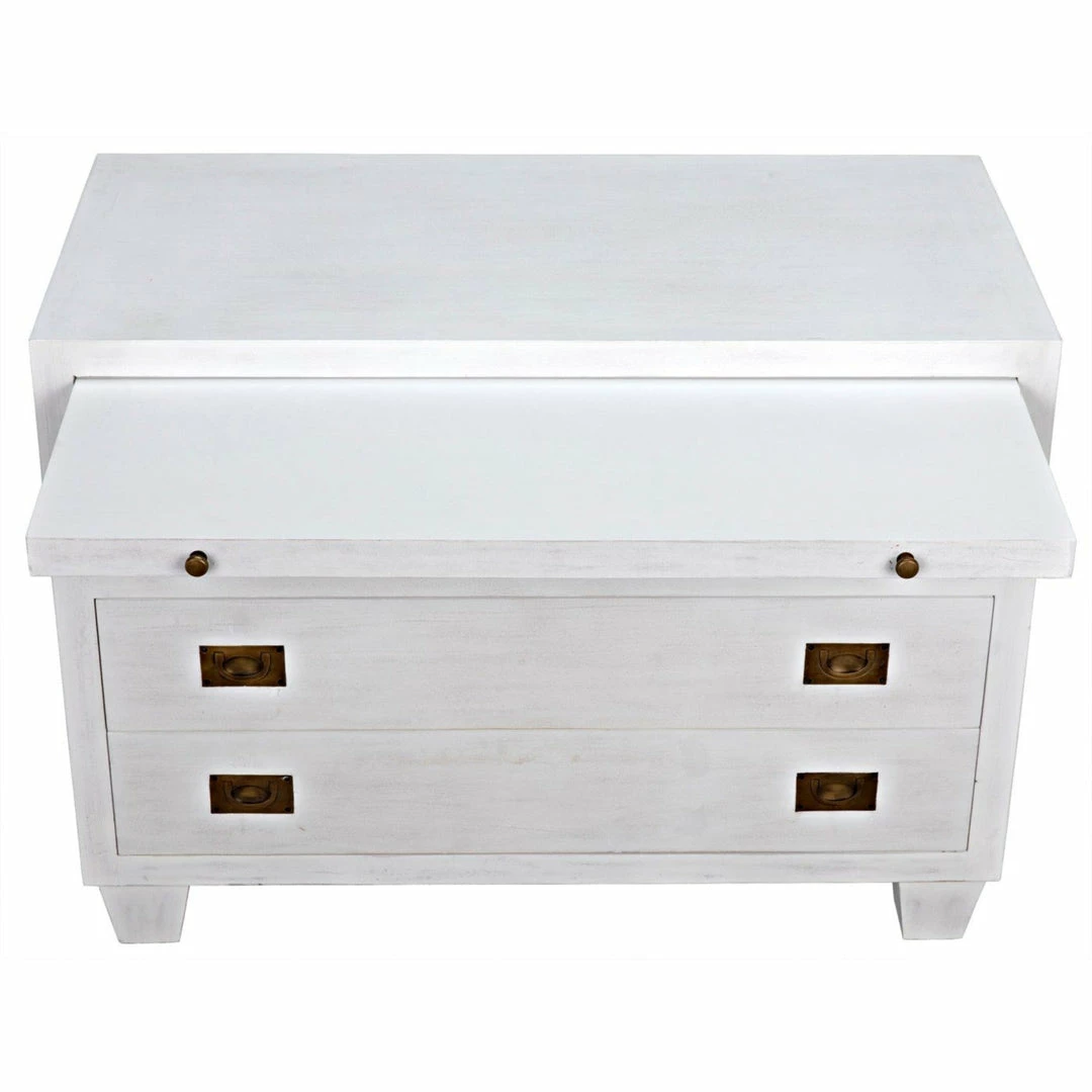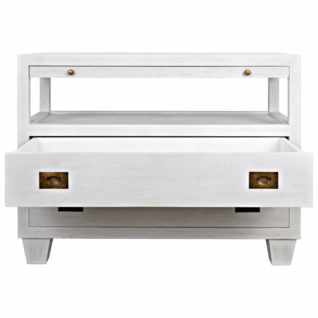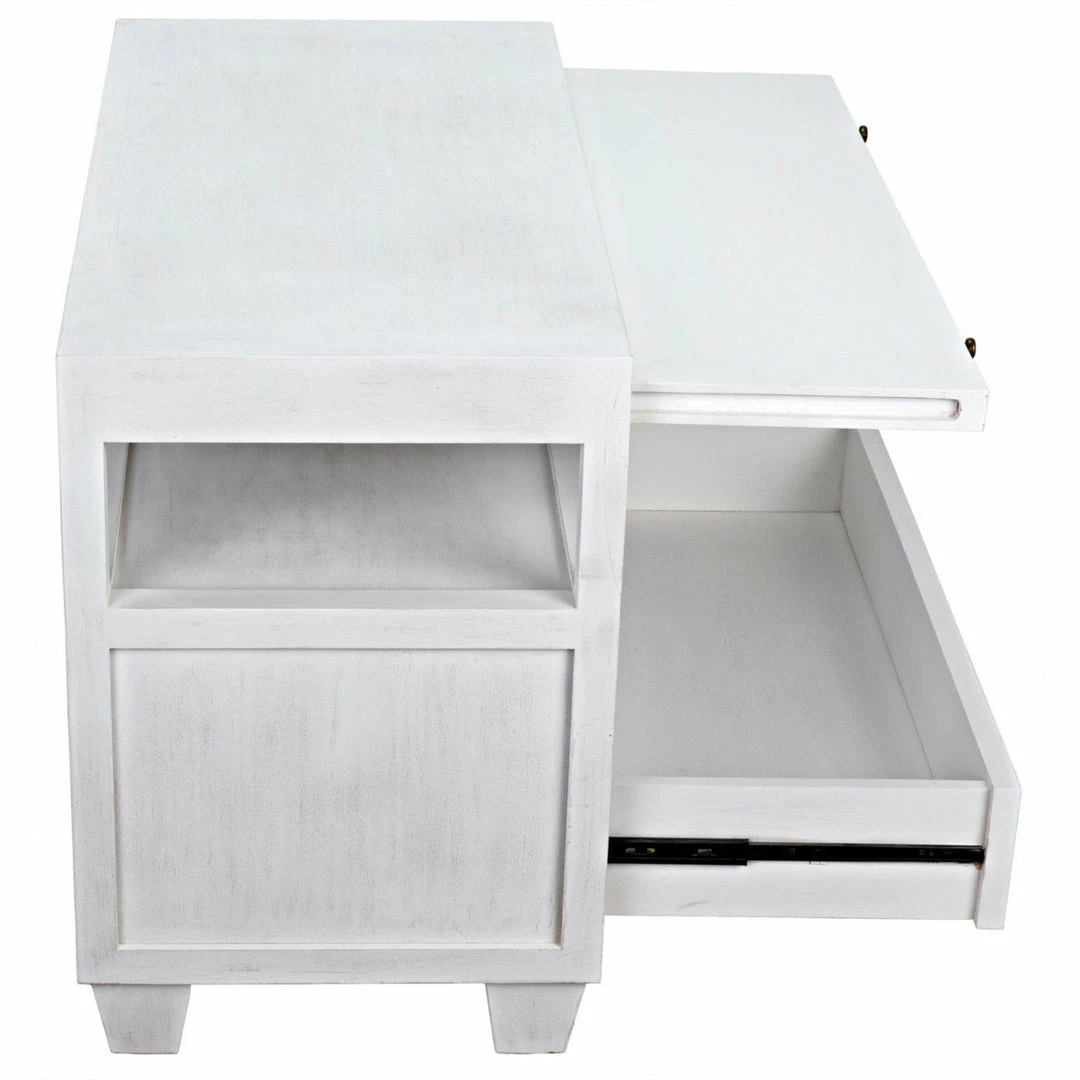 Expertly hand-carved of mahogany and finished in a clean crisp white, this remarkable side table’s features include two generous drawers and a handy sliding tray to increase the surface of its top when required.
