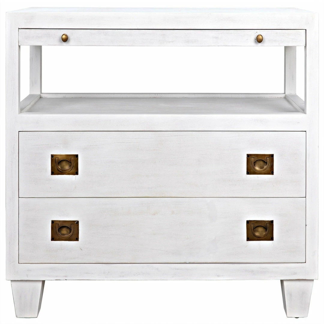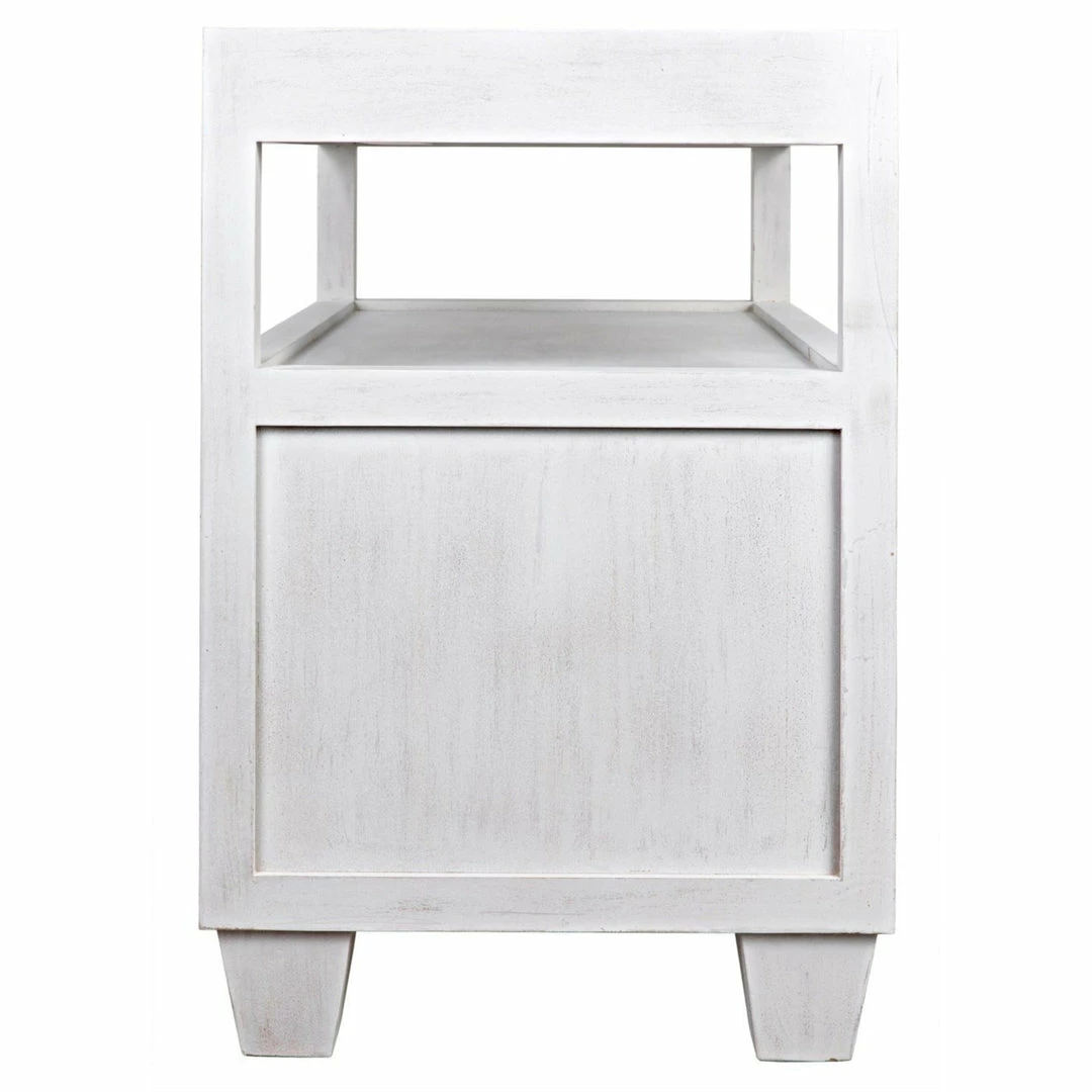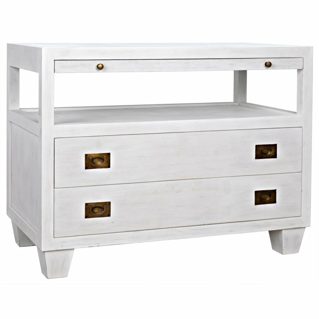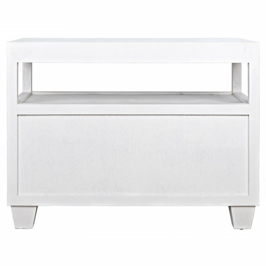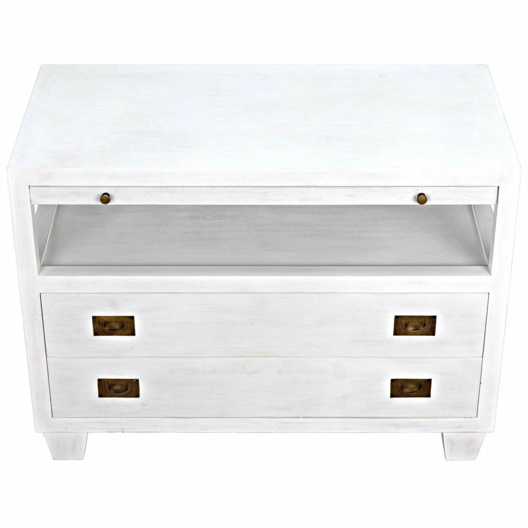 Expertly hand-carved of mahogany and finished in a clean crisp white, this remarkable side table’s features include two generous drawers and a handy sliding tray to increase the surface of its top when required.