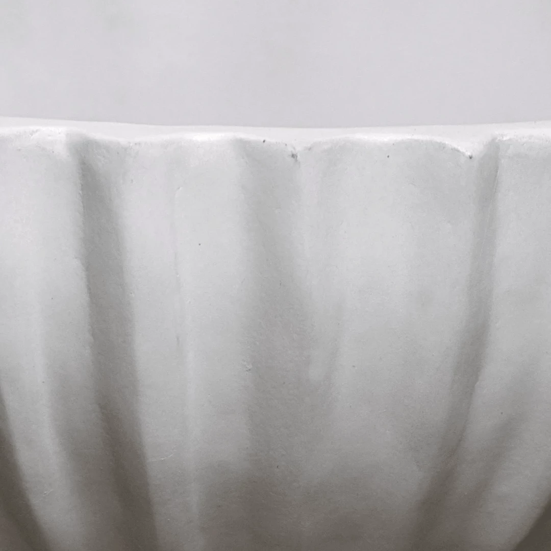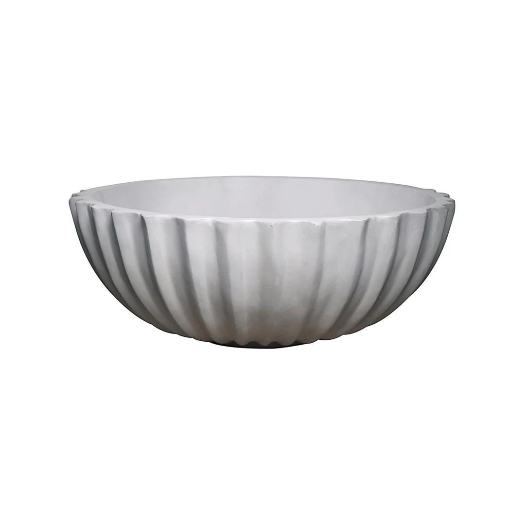 This decorative bowl was formed of fiber cement, which has a rich, natural texture that invites sculptural exploration. Customize with your choice of filler, Its fluted interior, and neutral finish will allow any added embellishments to shine.