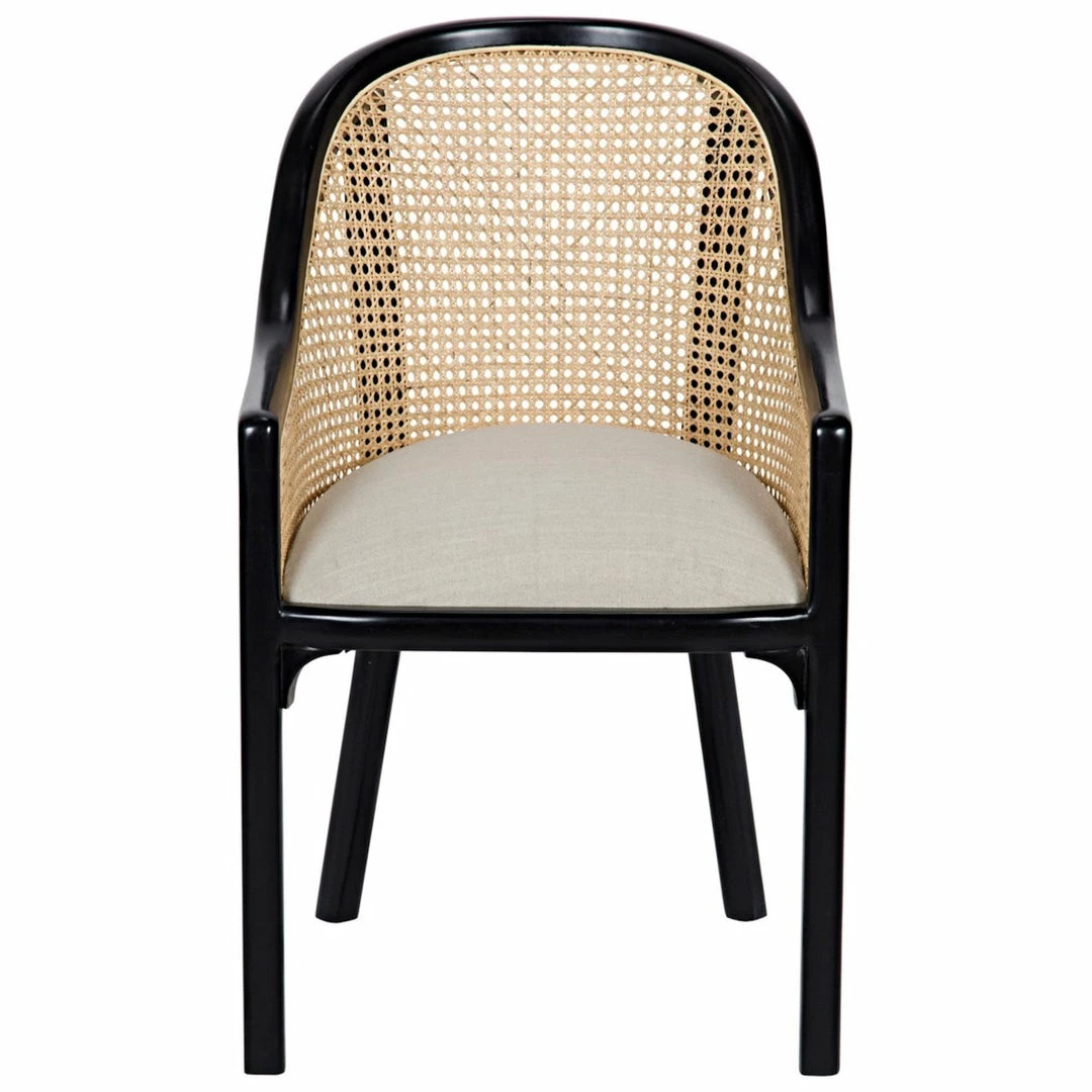 Hand-carved mahogany, in a rich hand-rubbed black finish, is softened here with a caned back and a comfy linen seat. This is a classically elegant chair, perfect for any traditional or eclectic decor.