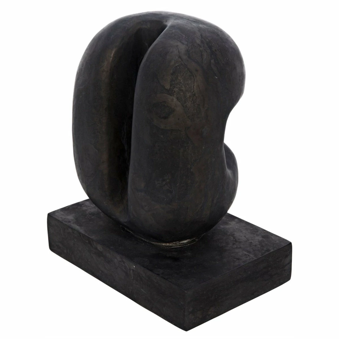 Solid marble is carved into intriguing curves in this compelling sculpture that rests on a solid marble base.