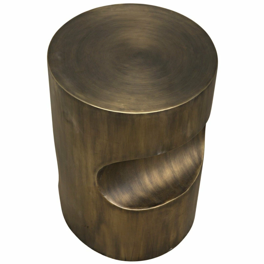 A burnished, richly beautiful antique brass finish elevates the contemporary lines of this unique metal side table. Artisan quality, it has been handcrafted and finished.