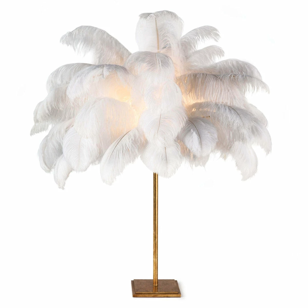 Romantic and feminine this sultry lamp will make a statement in your bedroom or living room. It’s elegant gilded base supports real, Ostrich feathers.
